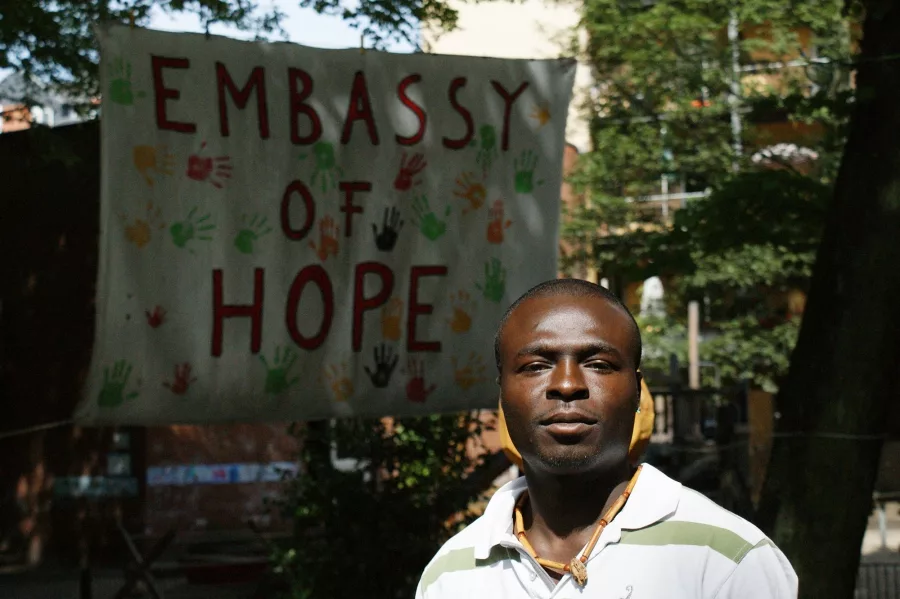 Kwadjos Odyssee ist auf Lampedusa noch lange nicht vorbei. Bis Ende 2012 lebt er in Flüchtlingslagern in Italien, mit sechs Personen in ein kleines Zelt gezwängt, zum Frühstück gibt es nur einen Espresso und einen kleinen Keks. Zweimal wird er umgesiedelt, die Bedingungen sind schlecht, wie es weitergehen soll, kann niemand sagen. „Dann plötzlich wurde uns gesagt: ‚Das Projekt ist beendet.’ Wir bekamen jeder 200 Euro und ein befristetes Visum, dann mussten wir gehen. Einen Monat schläft Kwadjo am Mailänder Bahnhof, wäscht sich nicht, gibt kaum Geld für Essen aus. Als nur noch 100 Euro übrig sind, wird ihm klar, dass es so nicht weitergehen kann. Er entscheidet sich, nach Hamburg zu reisen, eine Bauchentscheidung. „Von Hamburg hatte ich schon gehört, das schien mir ein guter Ort zu sein, um ein neues Leben zu beginnen.“ 70 Euro kostete die Bahnfahrt nach Hamburg, mit nur noch wenig Geld in der Tasche und ohne einen Anlaufpunkt kommt Kwadjo zunächst im städtischen Winternotprogramm unter, eigentlich ein Angebot für Obdachlose. Rund 300 Flüchtlinge aus Libyen nehmen in diesem Winter das städtische Angebot an. Als das Programm im April die Türen schließt, steht Kwadjo wieder vor dem Nichts – einer von 300 Menschen, für die sich Hamburg nicht zuständig fühlt, weil nach EU-Recht die Verantwortung für Flüchtlinge in dem Land liegt, in das sie ursprünglich eingereist sind, in diesem Fall also Italien. Dass die dortigen Behörden den Afrikanern einfach Sondervisa in die Hand gedrückt und ihnen somit den Schengen-Raum geöffnet hätten, sei nicht mit der Rechtslage zu vereinbaren, so die offizielle Sichtweise.