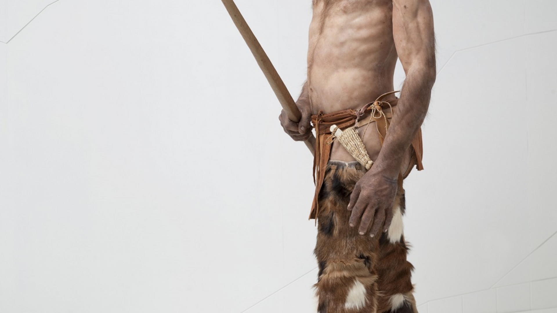 Naturalistische Rekonstruktion Ötzis im Südtiroler Archäologiemuseum in Bozen