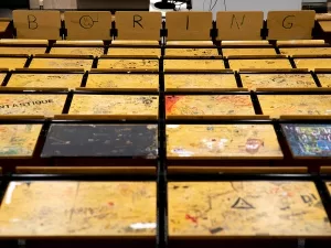 Was aber steckt hinter den Kunstwerken auf Tischen und Notizzetteln und was passiert dabei in unserem Kopf? Das haben nun Psychologen der Technischen Hochschule Ostwestfalen-Lippe näher untersucht. Konkreter Anlass dafür war ein Hörsaal, der saniert werden sollte. Im Laufe von Jahrzehnten haben Studierende der Medienproduktion auf den Tischen und Stühlen des Hörsaals unzählige kleine Kunstwerke hinterlassen. In Vorlesungen und Seminaren haben sie die Tische in ihrem Hörsaal mit bunten Zeichnungen, Sprüchen und Liebeserklärungen bemalt.
