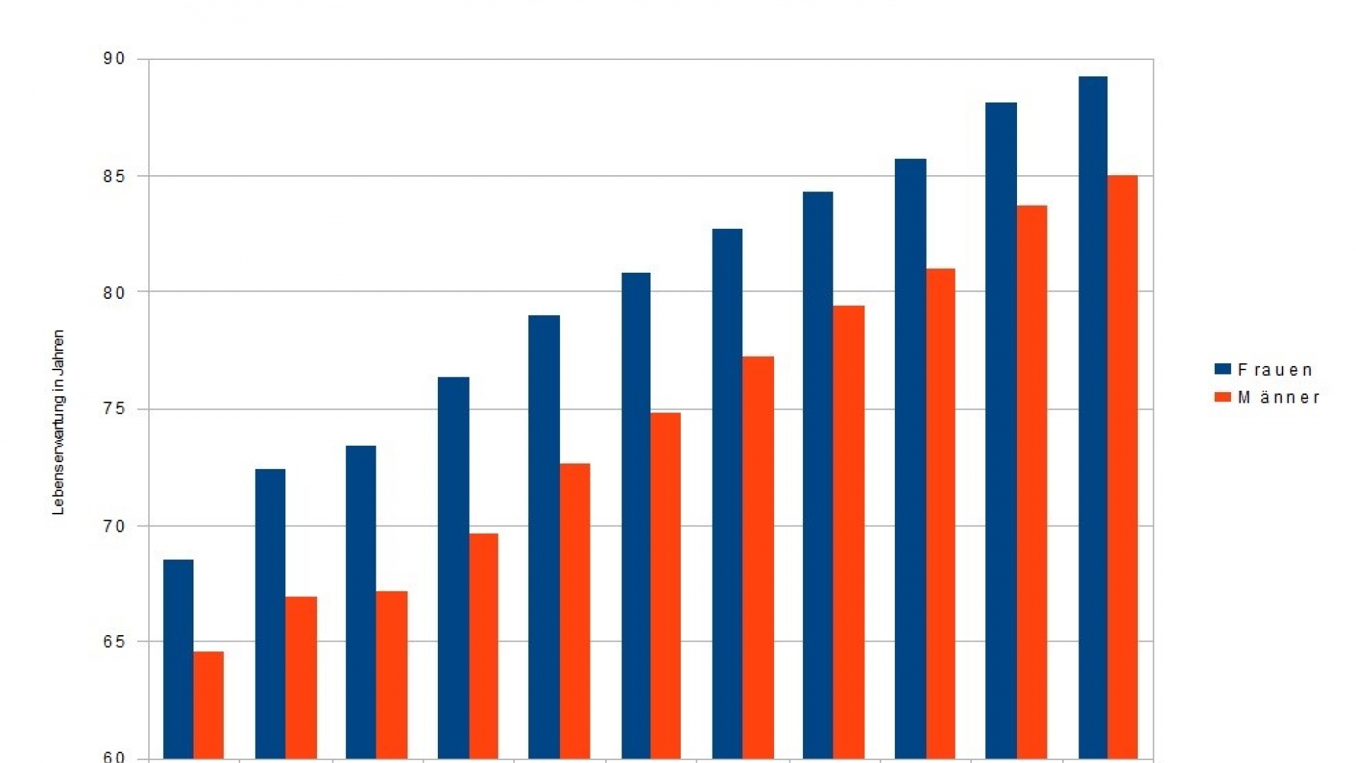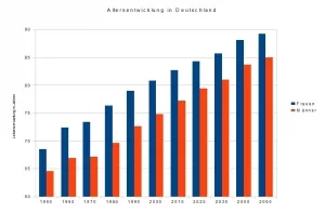 Wie bereits erwähnt, steigt die Lebenserwartung der Deutschen stetig an. Noch weit über das Rentenalter hinaus erleben wir heutzutage unseren Lebensalltag. Laut Statista ist die Lebenserwartung in den letzten Jahrzehnten rapide angestiegen. Frauen leben im Allgemeinen länger als Männer. Während die Lebenserwartung von Frauen in den 50er Jahren bei fast 69 Jahren lag, wurden Männer im Schnitt knapp 65 Jahre alt. 50 Jahre später lag die durchschnittliche Lebenserwartung bei Frauen bei 81 Jahren und bei Männern bei etwa 72. Für das Jahr 2060 wird die Lebenserwartung für Frauen auf 89 und für Männer auf 85 Jahre geschätzt.