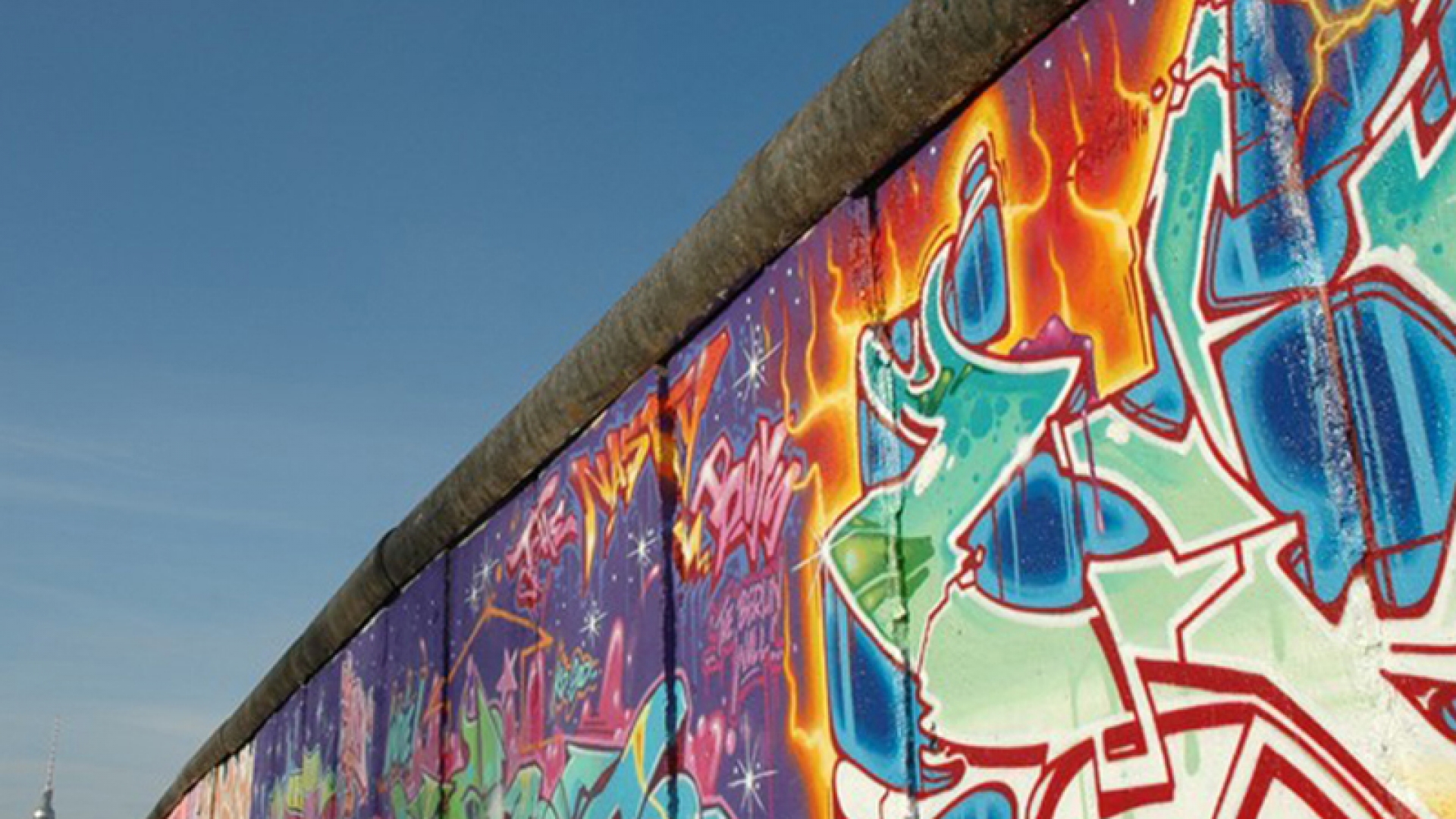 Bunt bemalte Mauer am Mauerpark in Berlin.