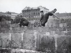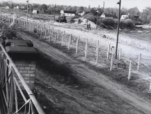 Mauerbau 1961: Die Mauer bestand zunächst aus Hohlblocksteinen, später wurden Betonplatten verwendet.