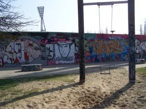 Diese erste Mauer hatte allerdings wenig Ähnlichkeit mit dem, was wir landläufig als die Berliner Mauer kennen. Stattdessen war es ein zusammengeflicktes Gebilde aus Hohlblocksteinen mit einem Y-förmigen Stacheldrahtaufsatz an der Oberkante. Ab 1965 wurde diese Mauer der ersten Generation durch eine Mauer mit aneinandergefügten Betonplatten ersetzt, die in sogenannte H-Profile eingefügt wurden.