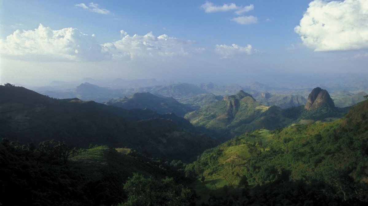 Nördlich der Kaiserstadt Gondar befindet sich eines der großen Naturspektakel Äthiopiens - das Simien-Gebirge. Mit seinen schroffen Gipfeln, scharfen Steilhängen, Tafelbergen und tiefen Tälern bietet das Gebirge einen gigantischen Anblick. Die meisten Gipfel erreichen bis zu 4.000 m, die extremste Erhöhung, der Ras Dashen mit 4.620 m gilt als vierthöchste des Kontinents. Seltene Tierarten wie der nur in Äthiopien beheimatete Abessinische Steinbock oder der Simien Fuchs, Blutbrustpaviane, Hyänen, Schakale und äthiopische Wölfe teilen sich mit über 50 Vogelarten die dramatische Kulisse des Simien-Gebirges.