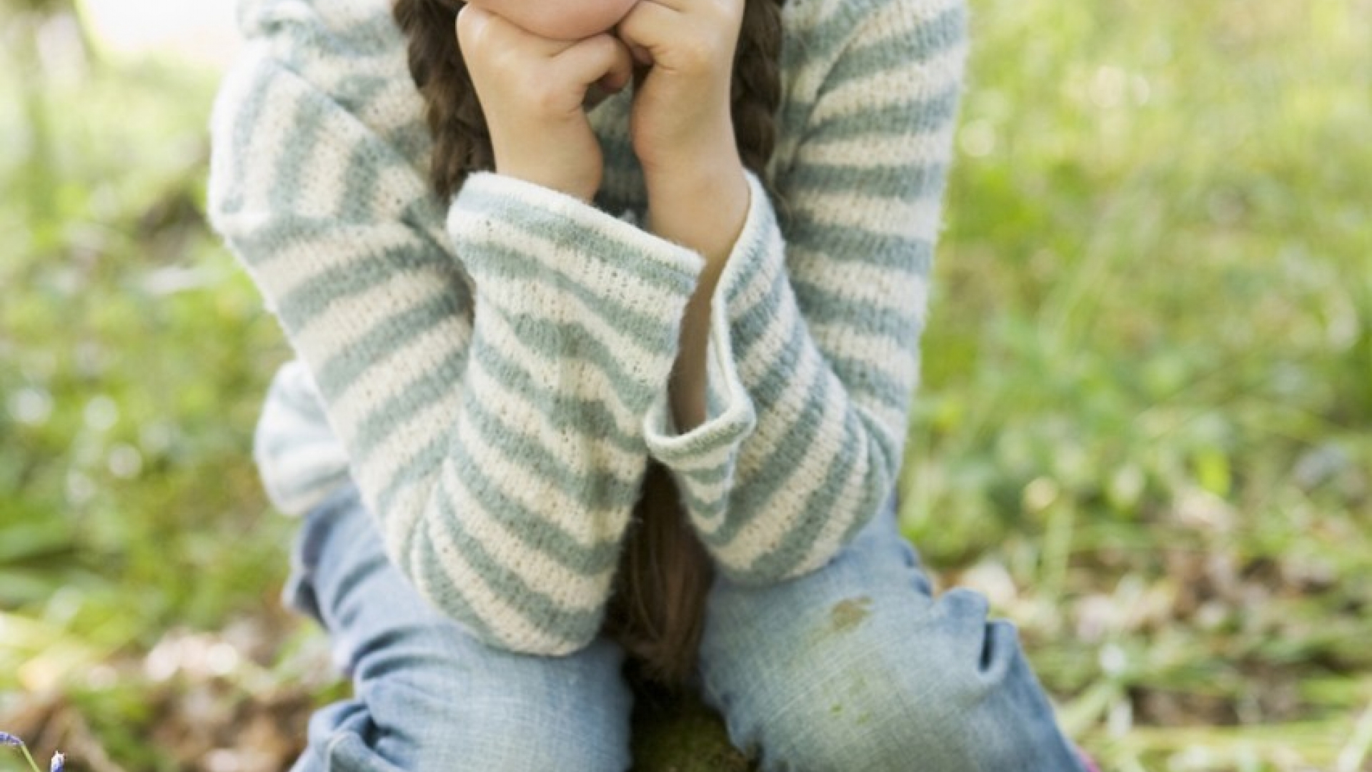 Der Frühling macht die Menschen (wieder) froh. Wer im Winter depressiv ist, in dem erwacht die Freude spätestens mit den ersten Blüten und der Wärme des Frühjahrs. Sie blühen mit den Blumen auf. Das Mädchen sitzt auf einem Baumstamm in einer Waldlichtung und genießt die erwachende Natur.