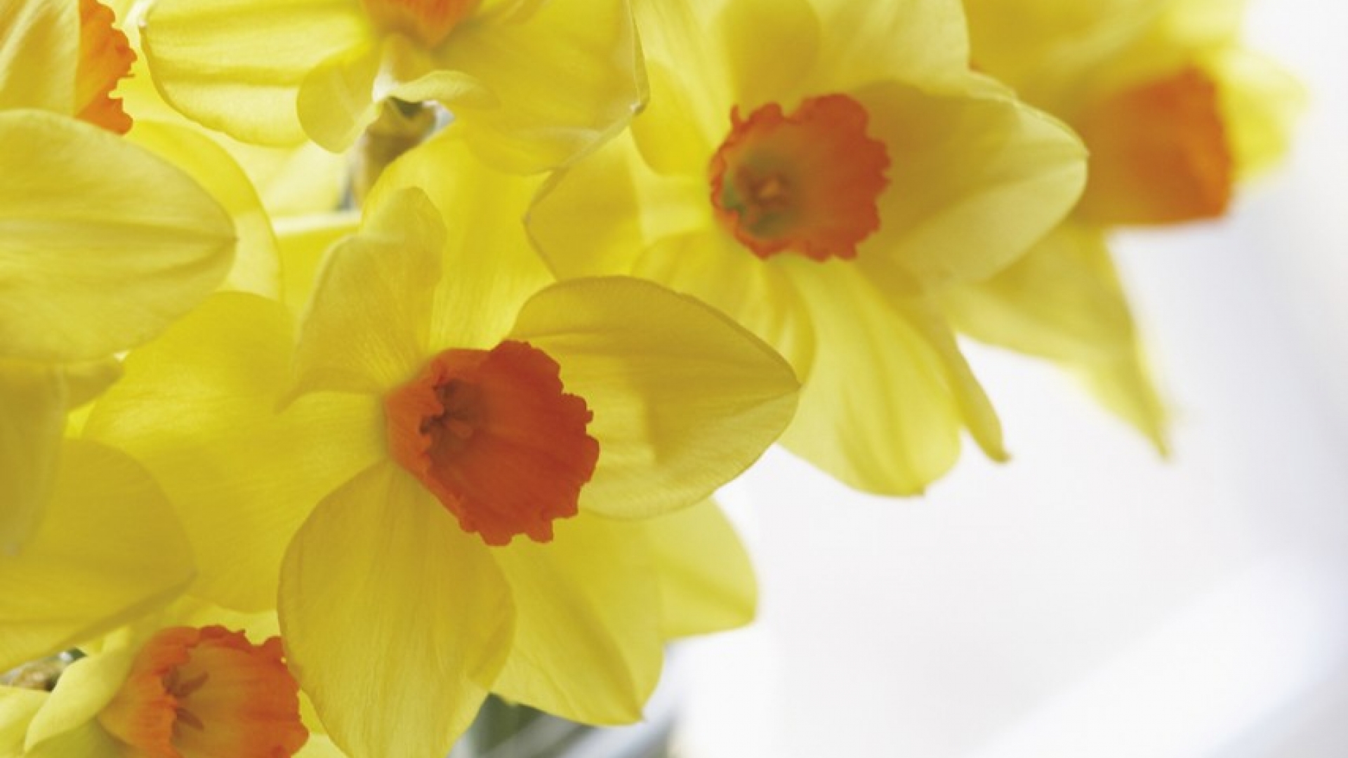 Ein Strauß gelber Osterglocken. In der Farbsymbolik der Blumen steht Gelb für Lebensfreude und Sorglosigkeit und symbolisiert die Sonne. Gelbe Blumen werden gern zur Genesung überreicht.