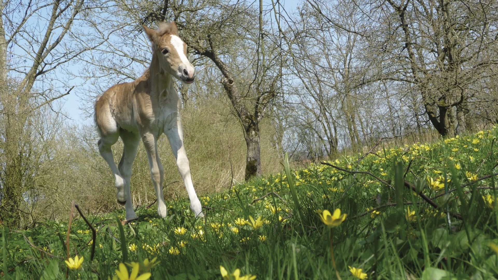Ein Fohlen entdeckt die Welt. Es hat einen weißen Nasenrücken. Weiß vereint in sich alle Farben. Es symbolisiert Licht, Glaube, Sauberkeit, Klugheit - kurz: alles, was gut ist. der Name weiß stammt übrigens von dem Wort "Weizen" ab.