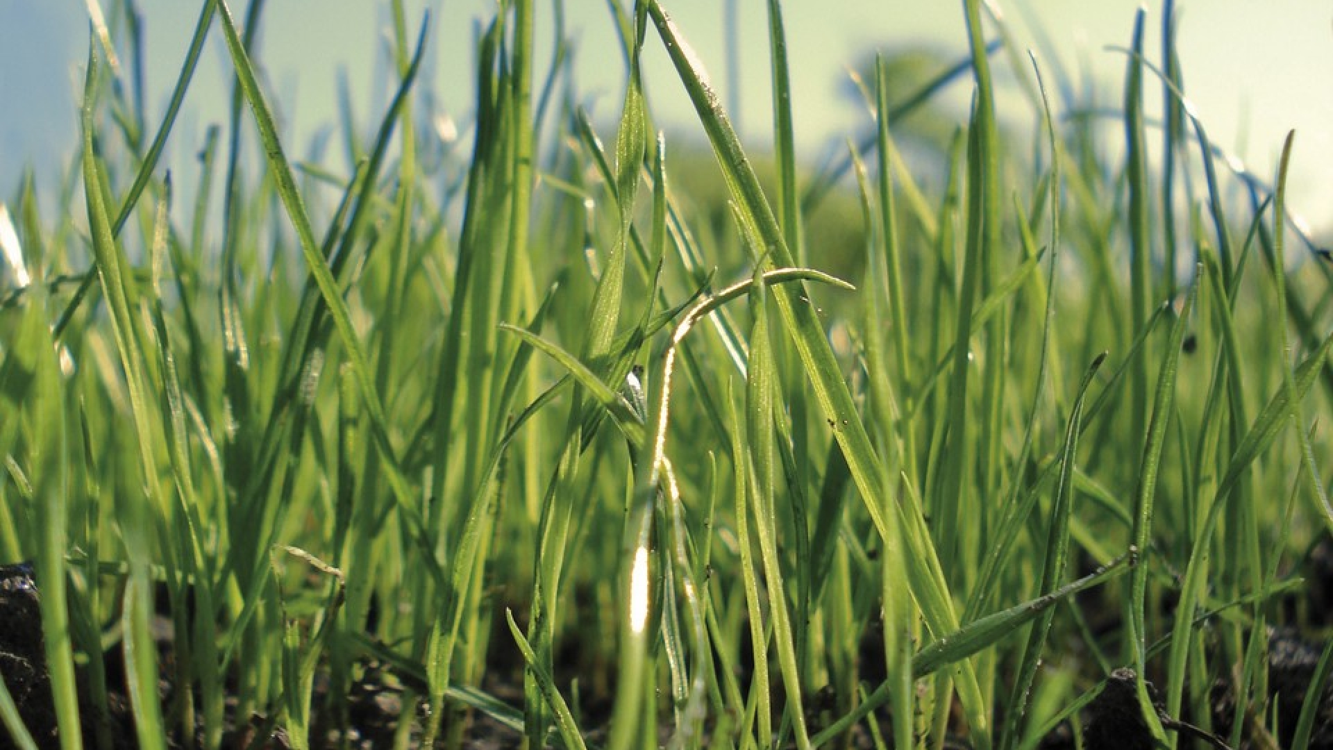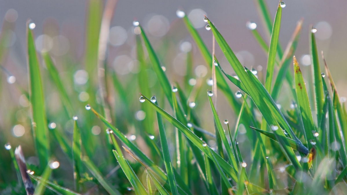 Das ist in etwa die Perspektive eines Grashüpfers bei der täglichen Fortbewegung. Im Bild sind Erde und Gras noch feucht und frisch. Die Halme ragen in den blau-weißen Himmel. Ideal, um stressfrei in den Tag zu starten. Blau wirkt nämlich beruhigend und entspannend. In der Farbtherapie wird die Farbe unter anderem zur Behandlung von Migräne, Halsbeschwerden, fieberhaften Erkrankungen und Rückenschmerzen eingesetzt.