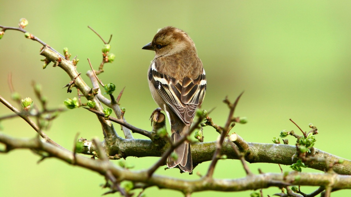Wenn es anfängt zu blühen, zwitschern auch die Vögel wieder. Das Bild zeigt einen Buchfink, den häufigsten einheimischen Finkenvogel. Braun ist die Farbe der Herkunft, der Wurzel, der Summe aller Erfahrungen von der Vergangenheit bis zur Gegenwart. Aber sie gibt auch die Ruhe und Gelassenheit, um einmal stehen zu bleiben, wie der Fink es hier vormacht.
