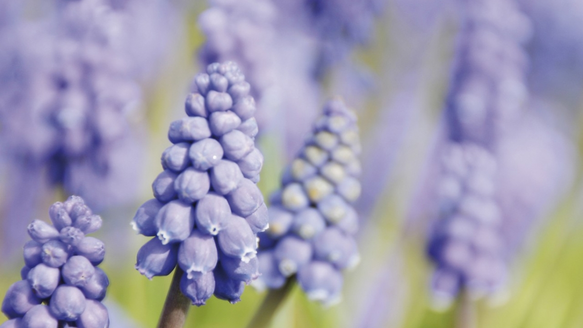 Die Farbe der Traubenhyazinthe ist blau-violett: kalte Farben in einer warmen Jahreszeit. Es ist als wollte die Blume eine Ausgleich schaffen. Violett soll medidativ und seelisch-geistig befreiend wirken, blau schenkt Erholung, Entspannung und Schlaf. Insofern ergänzen sich die Farben hervorragend. Blaue Hyazinthen stehen übrigens auch für Treue.