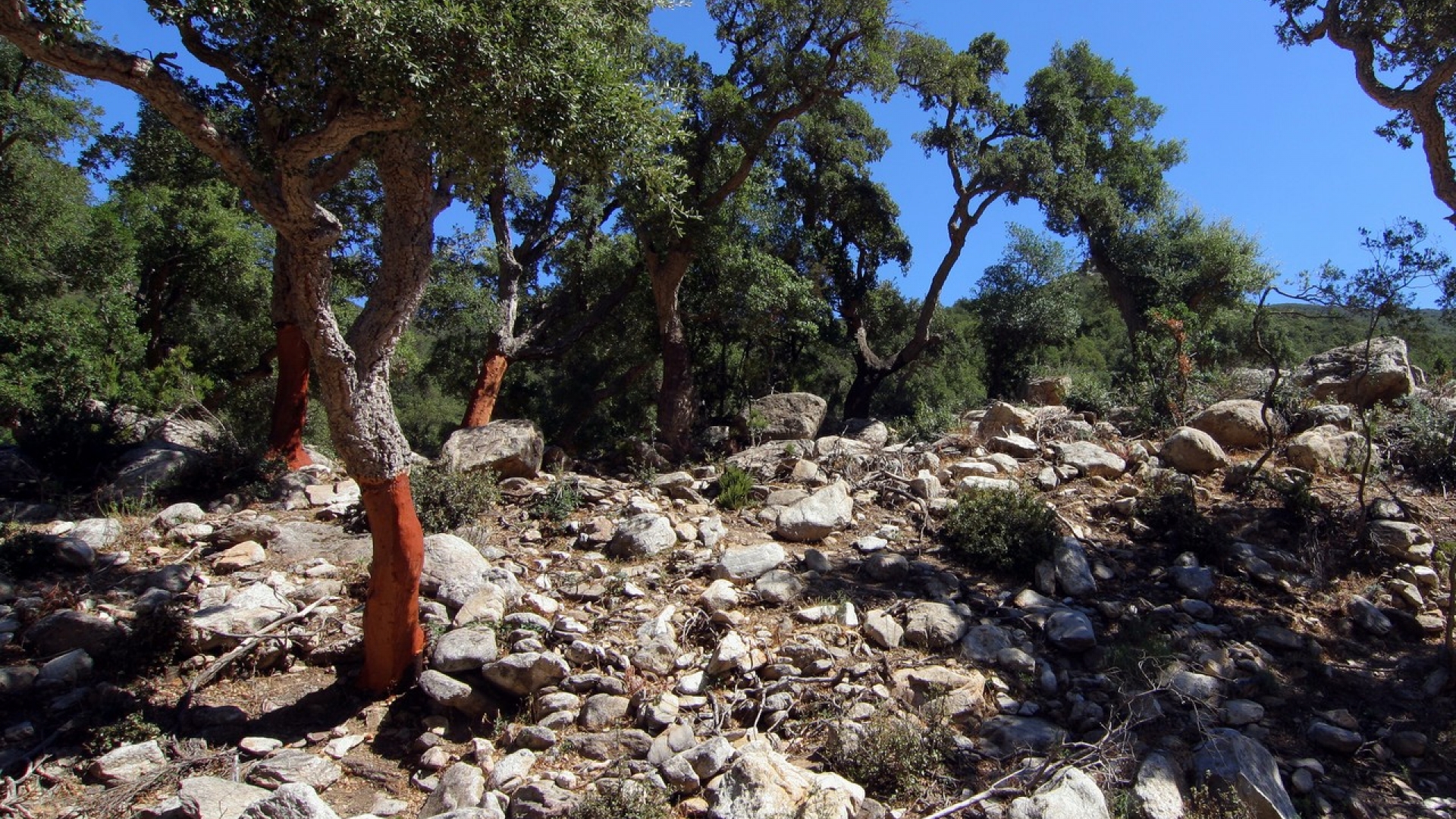 Recht häufig im westlichen Mittelmeergebiet wird die zur Korkgewinnung genutzte bis zu 20 m hohe Korkeiche angepflanzt. Kork wird vornehmlich aus der Rinde der Korkeiche gewonnen, die alle acht bis zwölf Jahre geschält wird. Er ist leichter als Wasser, fault nicht, leitet Wärme und Elektrizität schlecht, ist elastisch und gut bearbeitbar; er wird verwendet als Flaschenkorken, als Wärme- und Schallisolierung sowie u. a. für Schwimmgürtel. Der Abfall (Korkschrot) wird als Presskork zur Herstellung von Schall und Wärme dämmenden Baustoffen verwendet.