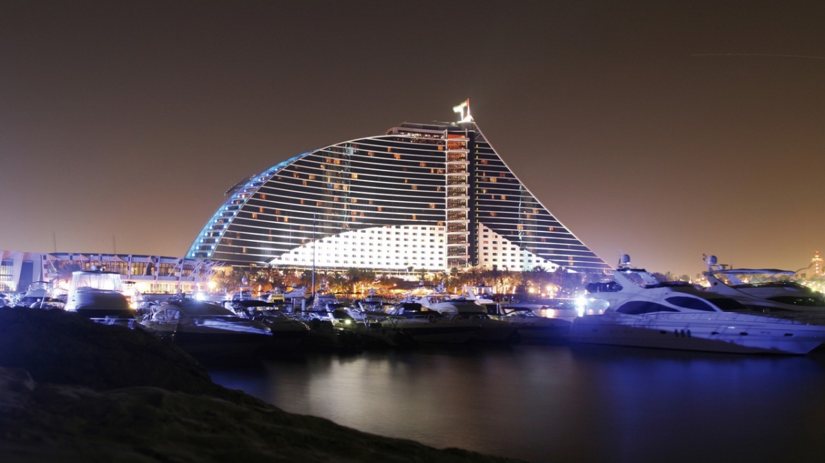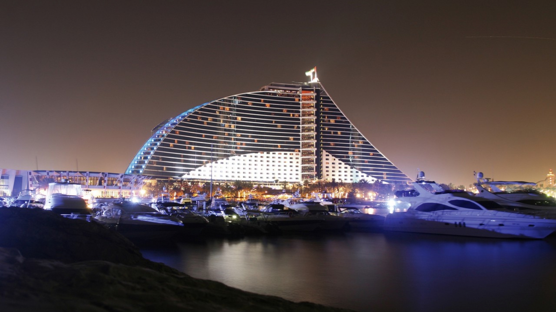Im arabisches Scheichtum am Persischen Golf stehen Bauten der Superlative: Hochhaus-Skyline, Burj Dubai (mit voraussichtlich 818 m höchstes Gebäude der Welt, Fertigstellung 2009), Luxuswohn- und Ferienanlage „The Palm“ auf drei künstlichen Inseln, einziges Sieben-Sterne-Hotel der Welt und Unterwasserhotel Hydropolis.