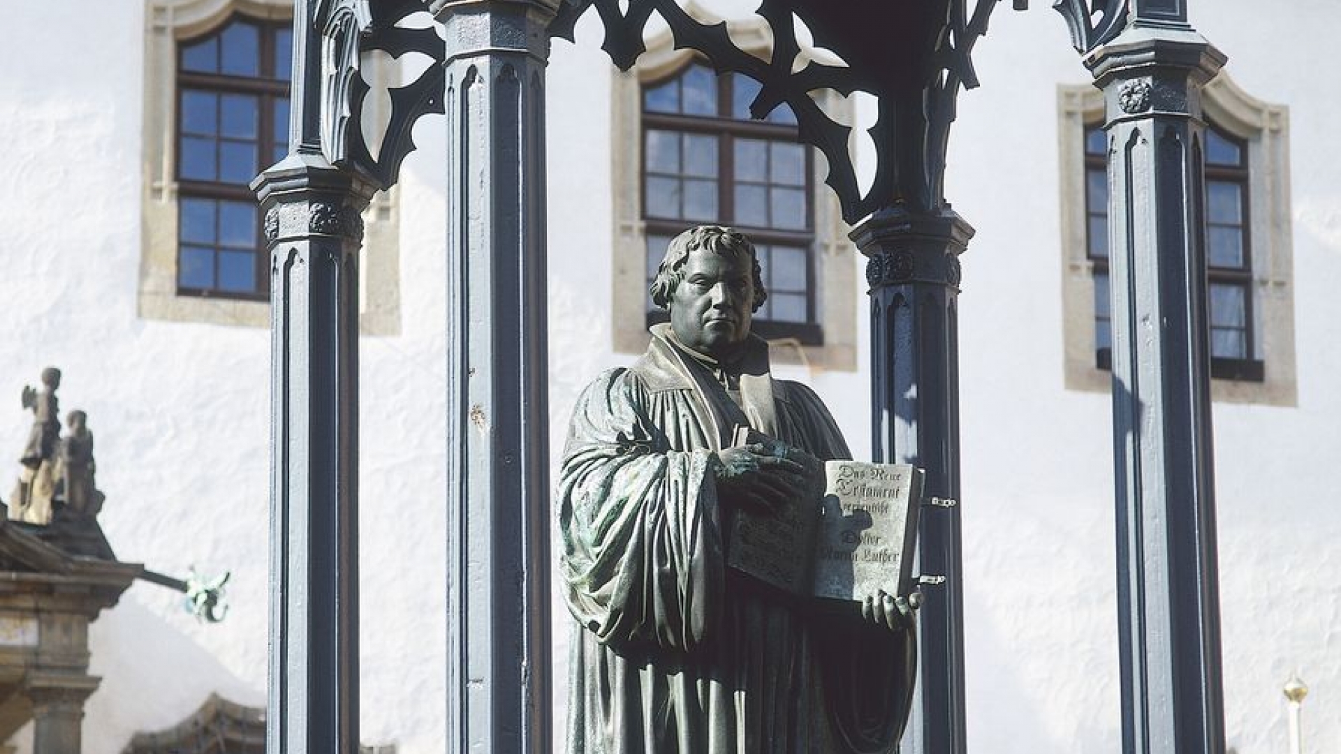 Das Denkmal in Wittenberg (Sachsen-Anhalt) erinnert an den deutschen Reformator Martin Luther (10. 11.1483-18.2.1546). Luther leitete durch seinen Bruch mit der römisch-katholischen Kirche die Reformation ein, die zur konfessionellen Spaltung Deutschlands und Europas führte. Seine Schriften und vor allem seine Bibelübersetzungen hatten bedeutenden Einfluss auf die Entwicklung der neuhochdeutschen Schriftsprache. Der Sohn eines Bergmanns trat 1505 ins Kloster der Augustiner-Eremiten in Erfurt ein (Priesterweihe 1507) und promovierte 1512 in Wittenberg zum Doktor der Theologie