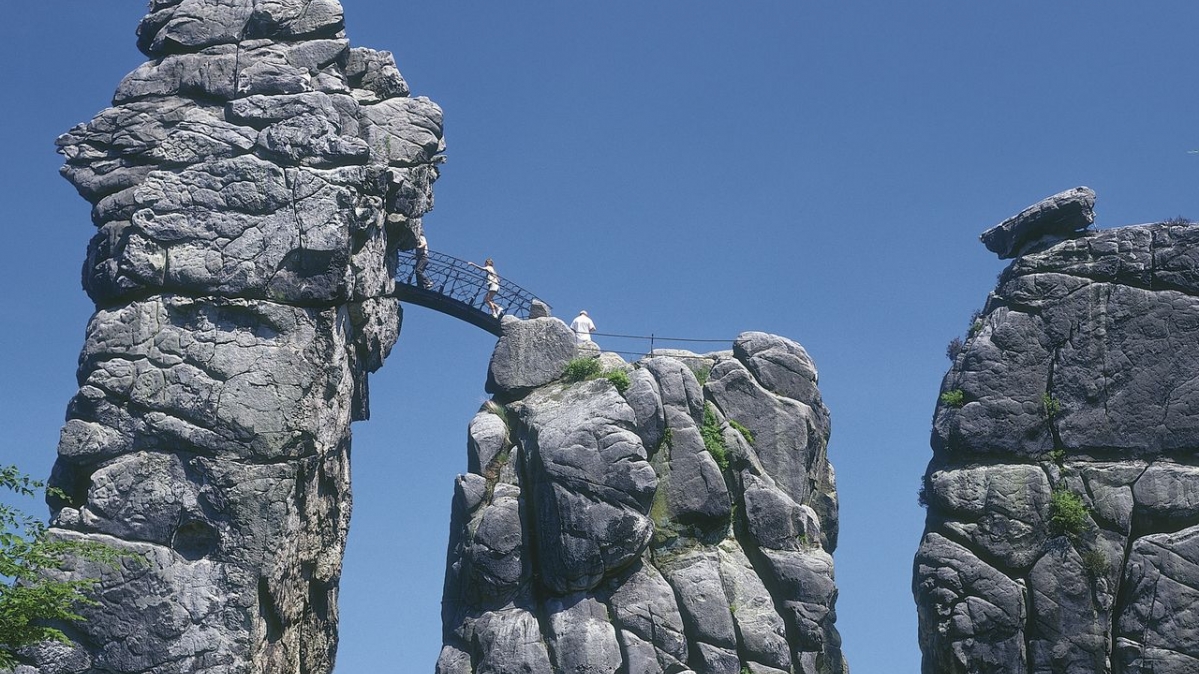 Bei den Externsteinen im Teutoburger Wald (Nordrhein-Westfalen) handelt es sich um eine Gruppe von 13 freistehenden Sandsteinfelsen (bis 38 m hoch); vielleicht war das einmal eine germanische Kultstätte. In einem Felsen ist eine Reliefdarstellung der Kreuzabnahme eingehauen. Im Mittelalter war diese Stätte ein Wallfahrtsort, heute ist es ein Naturschutzgebiet.