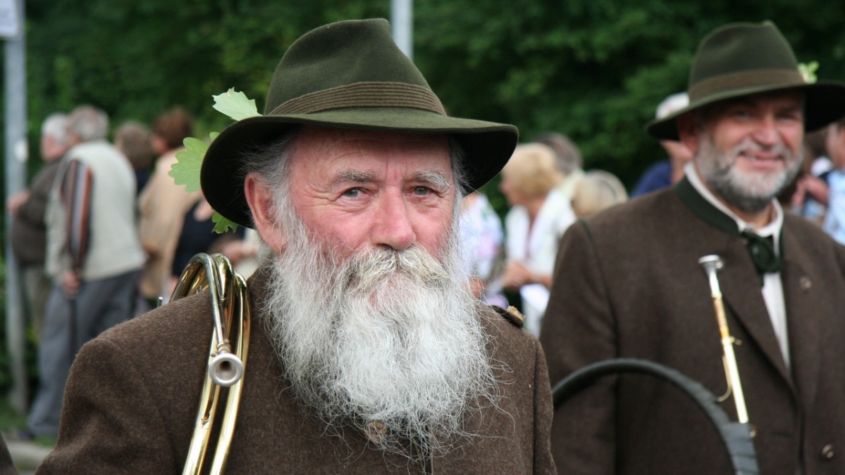 Bart- und Hornträger auf einem Trachtenumzug in Kelheim (Bayern). Wo sonst?
