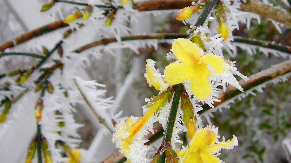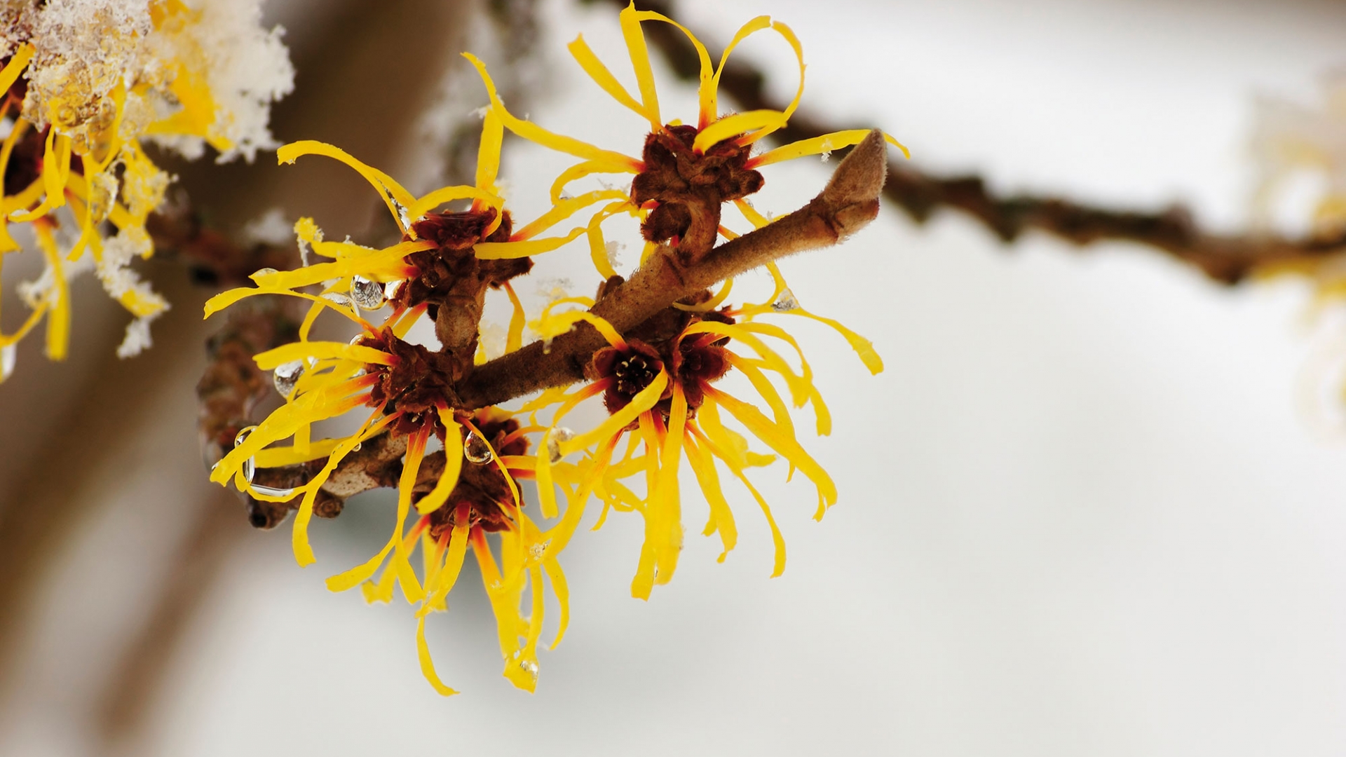 Alle Jahre wieder verzaubert uns pünktlich zur Weihnachtszeit der TV-Kultfilm "Drei Haselnüsse für Aschenbrödel". Märchenhaft mutet auch der Anblick dieser blühenden Zaubernuss bei Eis und Schnee an.