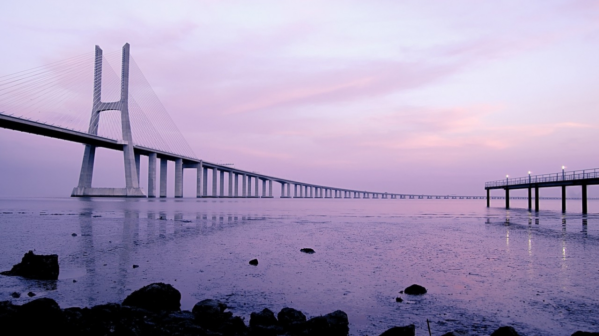 In einem sanften Bogen spannt sich die längste Brücke Europas über den Rio Tejo. Die Brücke wurde im Vorfeld der Expo im Jahre 1998 geplant und erbaut. Ihr Name erinnert an den berühmten portugiesischen Seefahrer und Entdecker Vasco da Gama, dessen Flotte als erste auf direktem Wege von Europa nach Indien segelte.