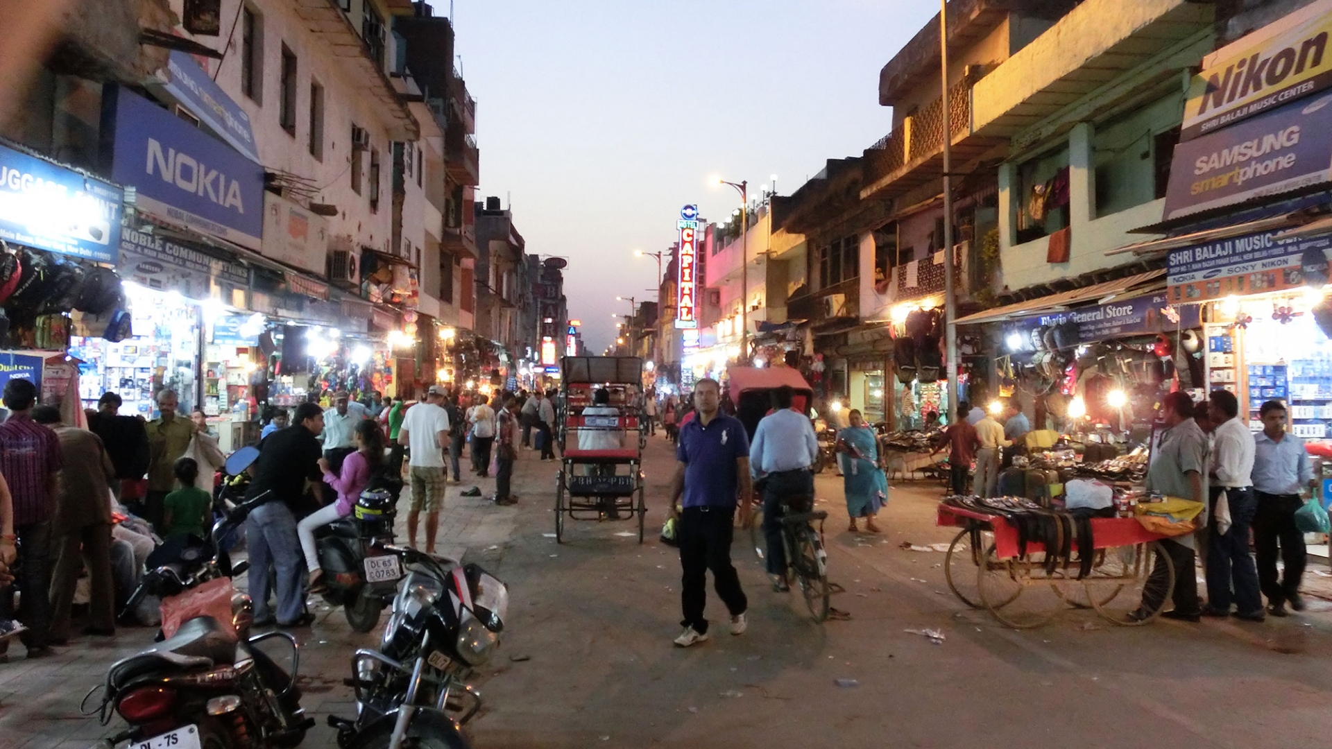 In der Einkaufsstraße reicht das Angebot von Wandfarbe über Mobilfunk-Ausrüstung bis zum Sari. Wenn am späten Abend die Geschäfte schließen, sieht man in den Seitengassen viele Menschen, die auf dem Pflaster oder den Ladeflächen von Lastwagen schlafen.