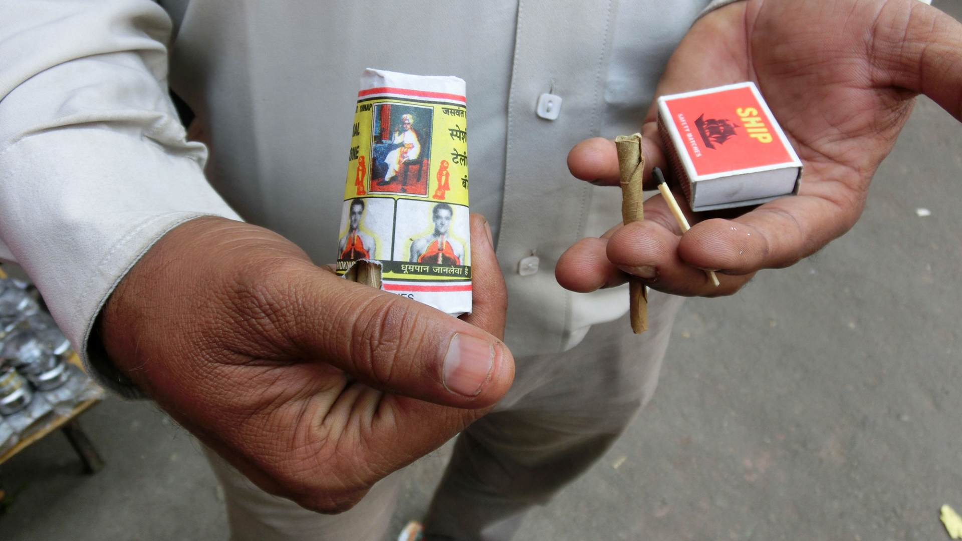 Marlboro & Co. sind in Indien zwar vertreten, die Einheimischen greifen jedoch oft lieber zur Bidi. Diese Zigaretten sind etwas kleiner als ihre papierumhüllten Pendants und ungleich billiger. 250 Bidis der abgebildeten Sorte gibt es online für knapp 300 Indische Rupien zu kaufen, was etwa vier Euro entspricht. Es gibt sie aromatisiert in verschiedenen Geschmackssorten.