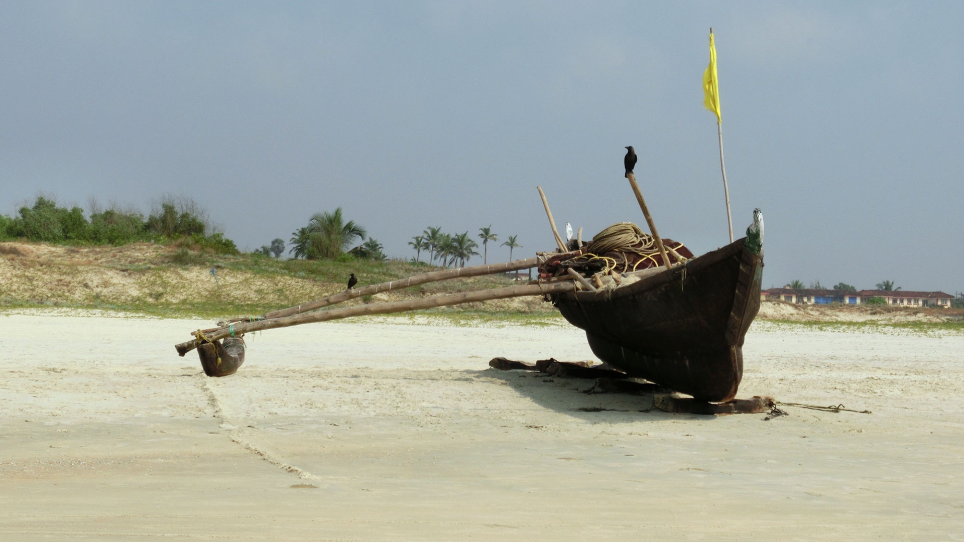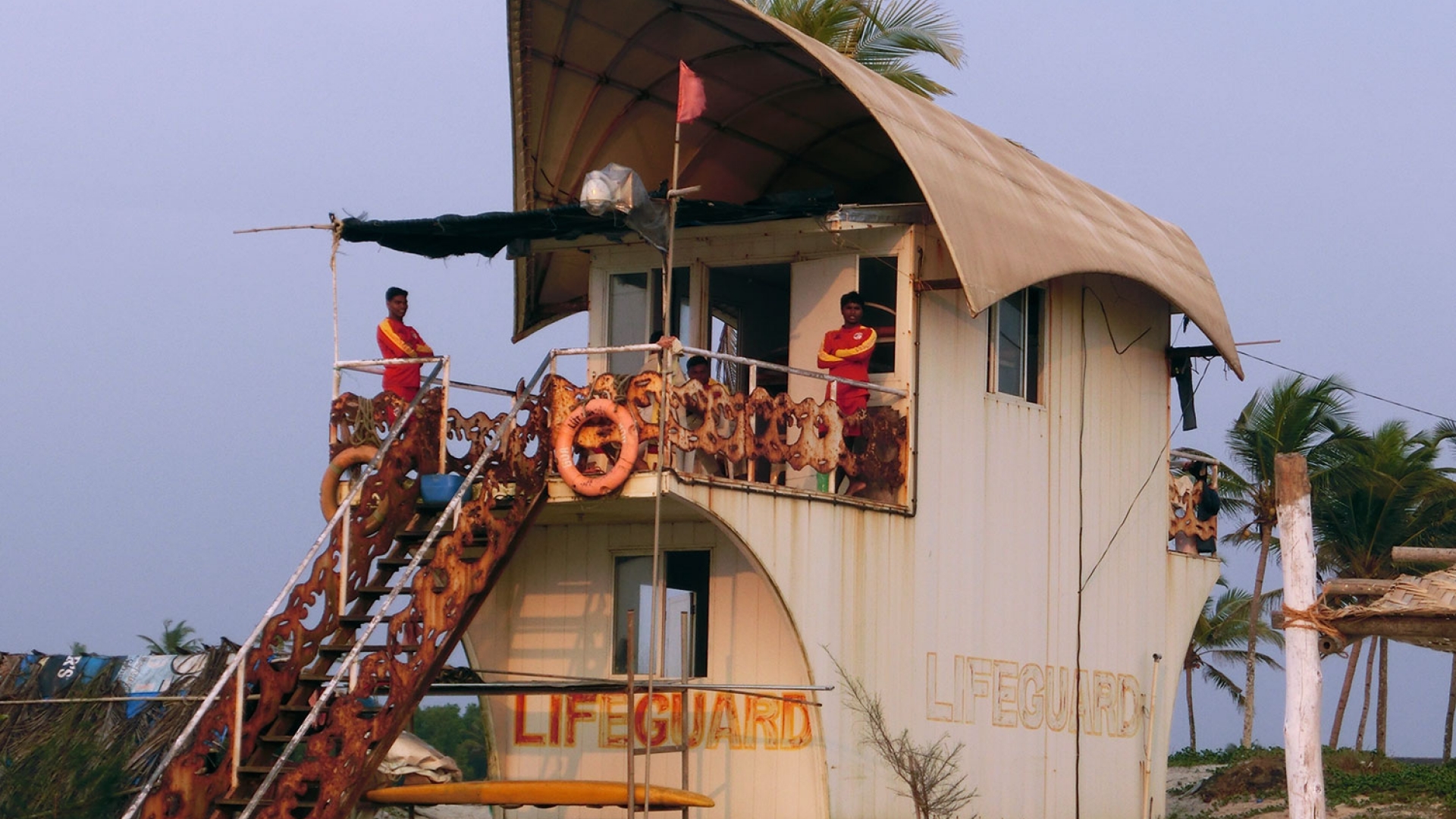 Für die Lebensretter geht ein ereignisloser Tag zu Ende. Die pittoresken Häuschen sind typisch für die Wasserwacht Goas.