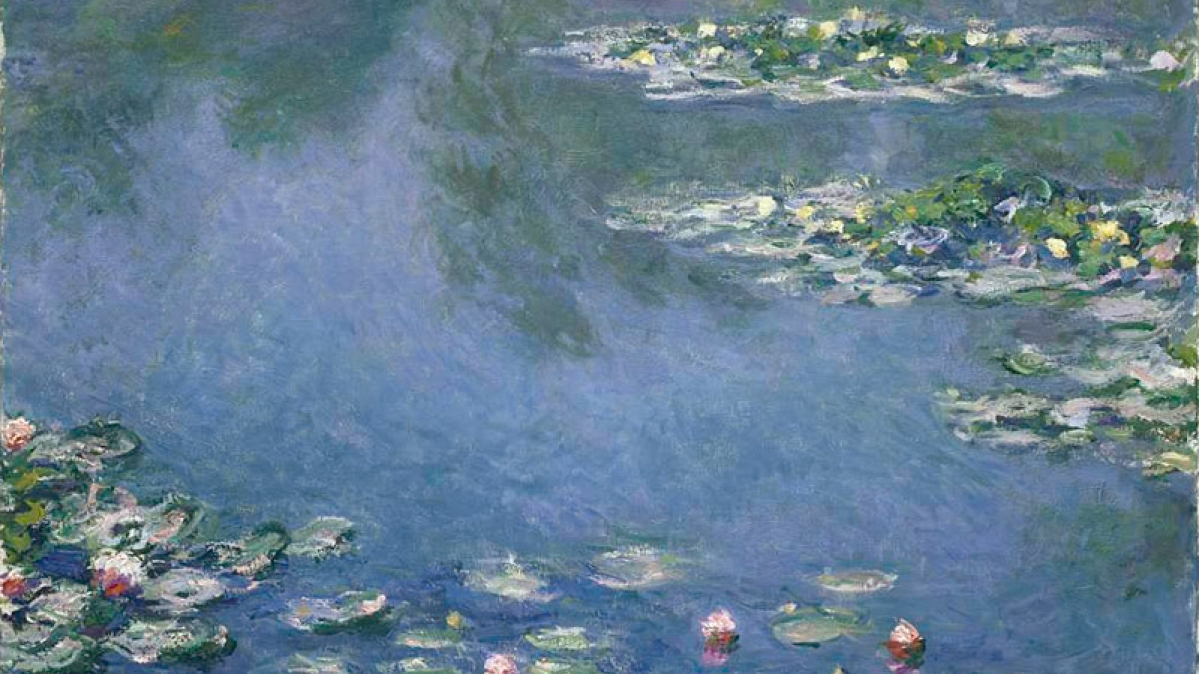 1893 hatte Monet ein Stück Land bei seinem Haus erworben, durch das ein Bächlein floss. Zusätzlich zu seinem Obst- und Blumengarten legte er dort einen Wassergarten an. Er bepflanzte den Teich mit Wasserpflanzen wie Seerosen, Schwertlilien und Schilf. Die Seerosen im Teich, die Iris, die kleine Brücke und die Glyzinen, mit denen sie bewachsen war, hat Monet bis zu seinem Tode im Jahre 1926 immer wieder gemalt, zu verschiedenen Jahreszeiten, mit immer wechselndem Blühen und immer verschiedenem Licht. Dabei schreitet die Auflösung der Formen mit zunehmendem Alter des Malers immer weiter voran und erreicht in manchen Seerosenbildern fast den Grad der völligen Abstraktion. Zur Bildstrecke London im Nebel.