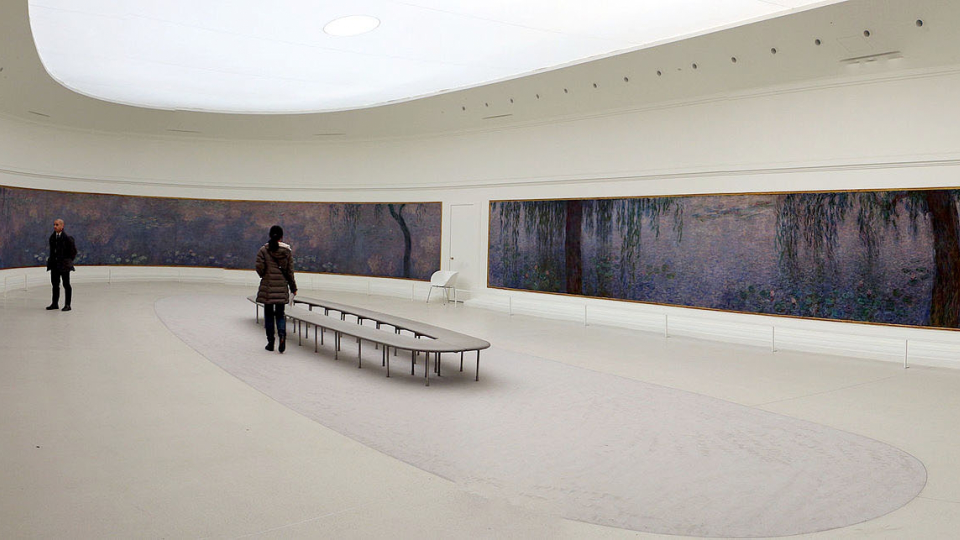 Die bei weitem größten unter den 250 Seerosenstücken Monets können heute in zwei Sälen des Musée de l’Orangerie in Paris besichtigt werden.. Die acht Gemälde sind bis zu 17 Meter breit und je 2 Meter hoch und haben eine Gesamtlänge von mehr als 100 Meter.