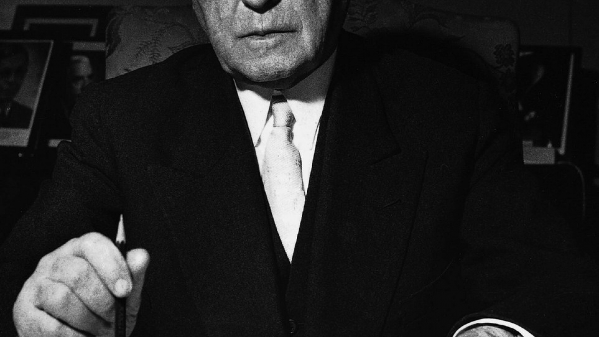 Der erste deutsche Bundespräsident (1949-1959) gehört 1946 zu den Gründungsmitgliedern der FDP und ist maßgeblich an der Formulierung des Grundgesetzes beteiligt. In seiner Amtsführung als Bundespräsident bemüht sich Heuss um Überparteilichkeit und Versöhnung. Als Repräsentant der demokratisch-liberalen Traditionen Deutschlands gelingt es Heuss in den 50er Jahren, auf diversen Staatsbesuchen das Vertrauen des Auslands für die junge Bundesrepublik zu gewinnen. 1959 wird Heuss mit dem Friedenspreis des Deutschen Buchhandels ausgezeichnet. Eine bekannte Institution geht übrigens auf seine Frau zurück: 1950 gründet Elly Heuss-Knapp das Müttergenesungswerk. Auf unserem Foto posiert Theodor Heuss für ein Porträt, das ihn wenige Tage vor seinem 70. Geburtstag am 31. Januar 1954 zeigt.
