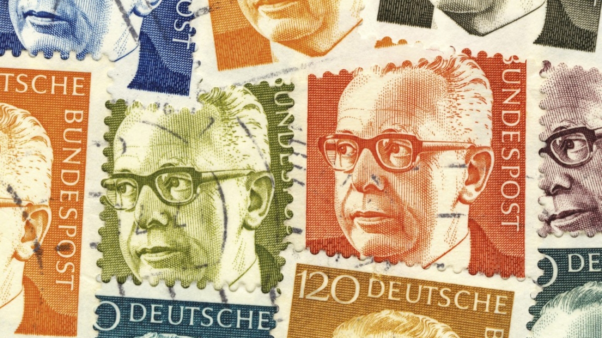Bundespräsident wird Gustav Heinemann erst 1969. Geht man also nach dem Höhepunkt der Lebensleistung, dann wäre er eher ein Kandidat, den man in den 60ern oder noch eher den 70er Jahren zu würdigen hätte. Warum also hier in den 50ern? Weil Gustav Heinemann als Bundesinnenminister – das ist er seit 1949 - einen außerordentlichen Schritt macht: Er tritt 1950 wegen der von Bundeskanzler Konrad Adenauer betriebenen Wiederbewaffnung zurück. Damit ist Heinemann der erste Minister der jungen Republik, der von seinem Amt zurücktritt. Der Hintergrund: Adenauer hat auf eigene Faust den USA die deutsche Bereitschaft zur Wiederbewaffnung signalisiert und sein eigenes Kabinett erst hinterher davon in Kenntnis gesetzt. Heinemann lehnt abgesehen von der Vorgehensweise Adenauers die Wiederbewaffnung ab, weil er Deutschland im Fall eines Krieges als Schlachtfeld des Ost-West-Konflikts sieht, auf dem es keine Sieger geben kann. 1952 tritt Heinemann aus der CDU aus, kämpft später in den 50ern weiter vehement gegen Adenauer und gegen die Atombewaffnung der Bundeswehr. Erstaunlich angesichts seiner durchaus undiplomatisch anmutenden Einstellungen zu diesem zentralen Politikthema: Als SPD-Politiker wird der bekennende Christ Heinemann 1966 Bundesjustizminister und von 1969 bis 1974 Bundespräsident. Unser Bild zeigt eine Zusammenstellung von Briefmarken mit dem Porträt des Bundespräsidenten.