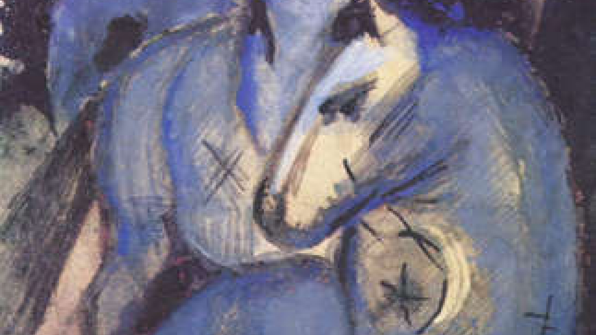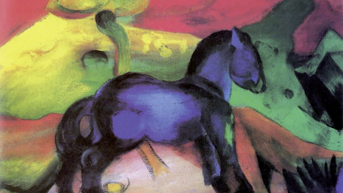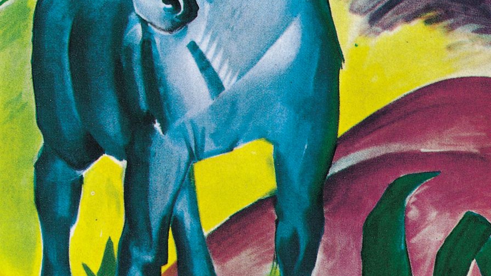 Sie gehören zu den bekanntesten Werken des Blauen Reiters - die Pferde Franz Marcs. Zwischen 1911 und 1914 schuf der Maler eine ganze Serie von Bildern mit Pferden und anderen Tieren, wie das hier abgebildete Werk "Blaues Pferd I". Im Gegensatz zu Kandinsky ging es Franz Marc in dieser Schaffensphase nicht darum, den Empfindungen der Seele durch abstrakte Formen Ausdruck zu verleihen. Er sah die Reinheit, nach der die "Blauen Reiter" strebten, am weitesten in Tieren verwirklicht, da sie im Einklang mit der Natur lebten, wie er rückblickend schrieb: "Ich empfand schon sehr früh den Menschen als 'häßlich'; das Tier schien mir schöner, reiner; aber auch an ihm entdeckte ich soviel gefühlswidriges u. häßliches, so daß meine Darstellungen […] instinktiv immer schematischer, abstrakter wurden." Nicht direkt als hässlich, aber doch als schockierend empfanden damals manche Ausstellungsbesucher Marcs Tierdarstellungen.