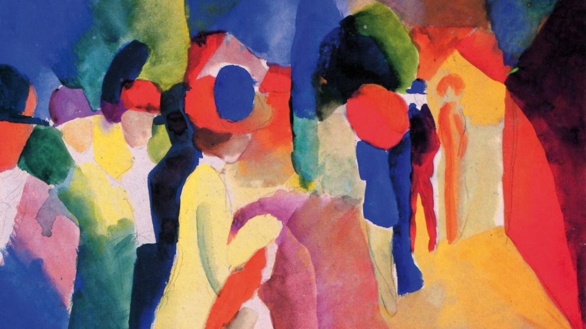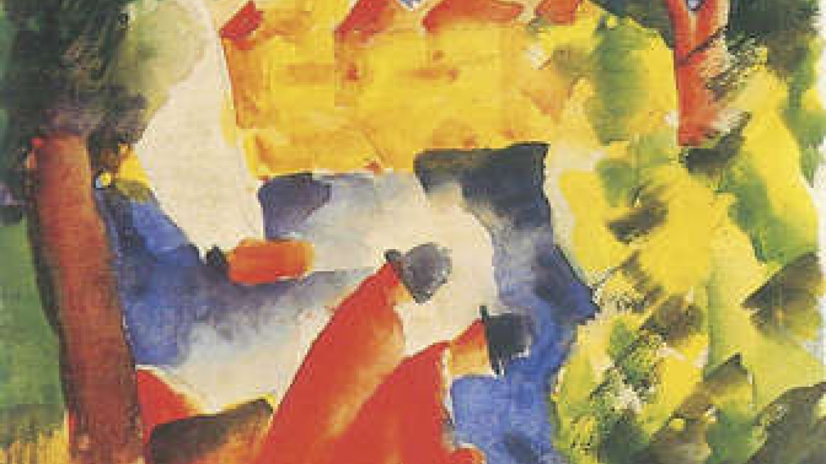 August Macke hatte sich bereits einen Namen als Künstler gemacht, zunächst als Impressionist, später als Expressionist, ehe er über seinen Freund Franz Marc mit dem "Blauen Reiter" in Berührung kam. Macke beteiligte sich sowohl redaktionell am Almanach, als auch mit Kunstwerken an beiden großen Ausstellungen, hatte jedoch stets ein ambivalentes Verhältnis zum "Blauen Reiter" und beendete die Zusammenarbeit 1912 im Streit. Das lag nicht zuletzt an Wassily Kandinskys schwierigem Charakter und einer gefühlten Benachteiligung der eigenen Werke. Bei der ersten Ausstellung in München, Köln, Berlin, Hagen und Frankfurt war August Macke nur mit drei Bildern vertreten gewesen. Auch in Mackes Werken spielten Farben die zentrale Rolle. Und wie die meisten Künstler des "Blauen Reiters" zog er Farbharmonien den Dissonanzen vor, was sie von Bewegungen wie den Brücke-Malern unterschied.