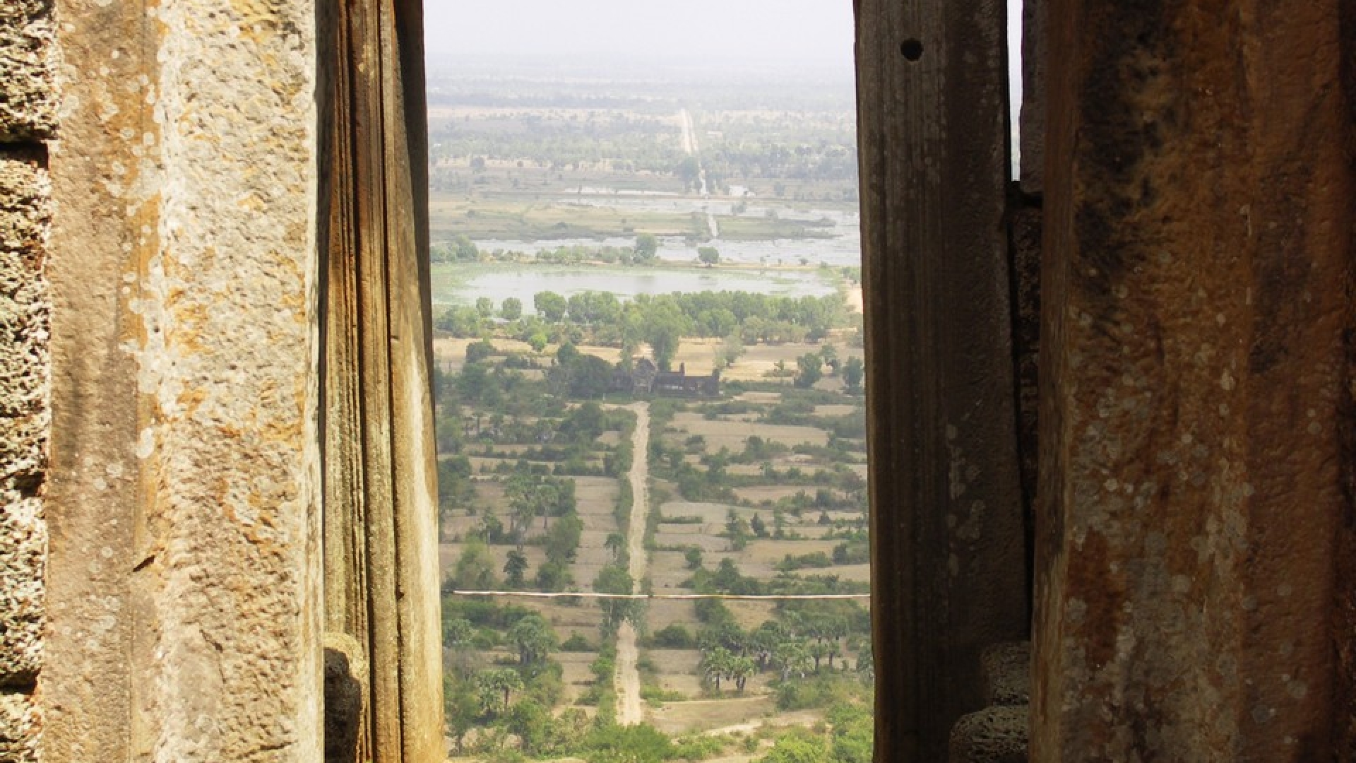 Blick auf die mehrere Kilometer lange Eingangsachse des Tempels Phnom Chisor im Süden von Kambodscha