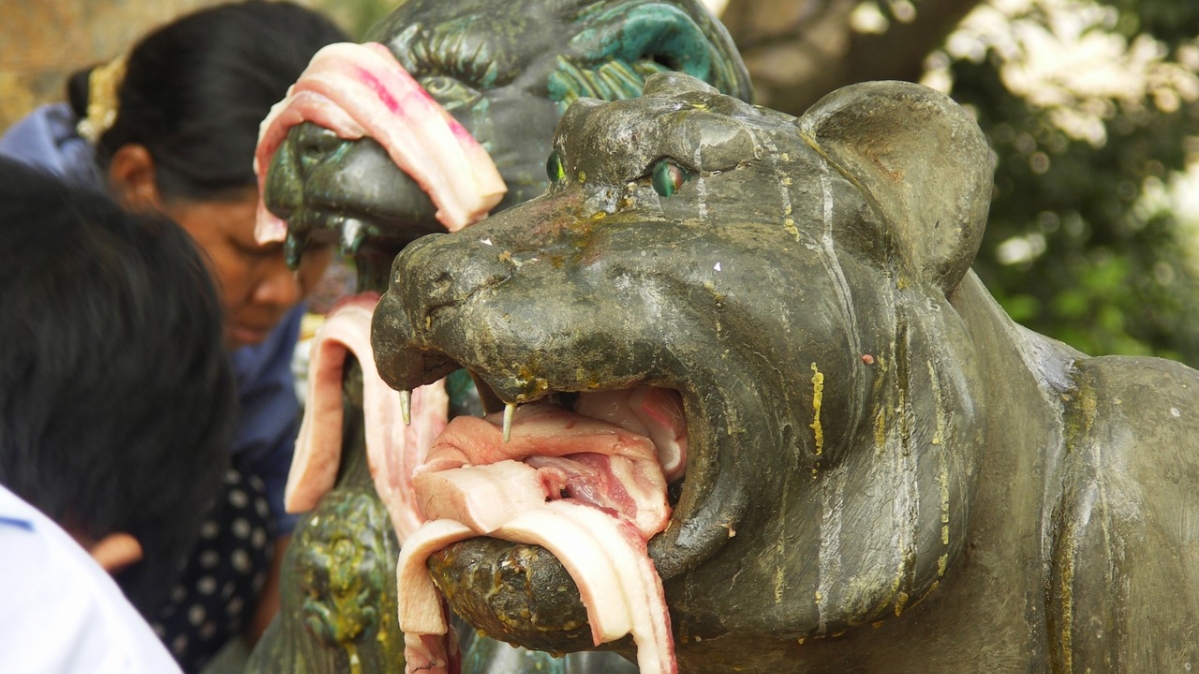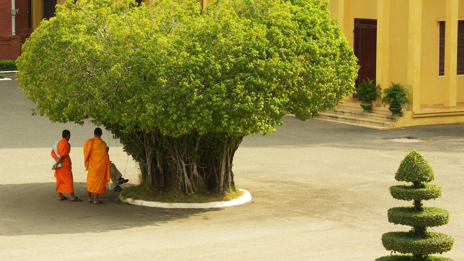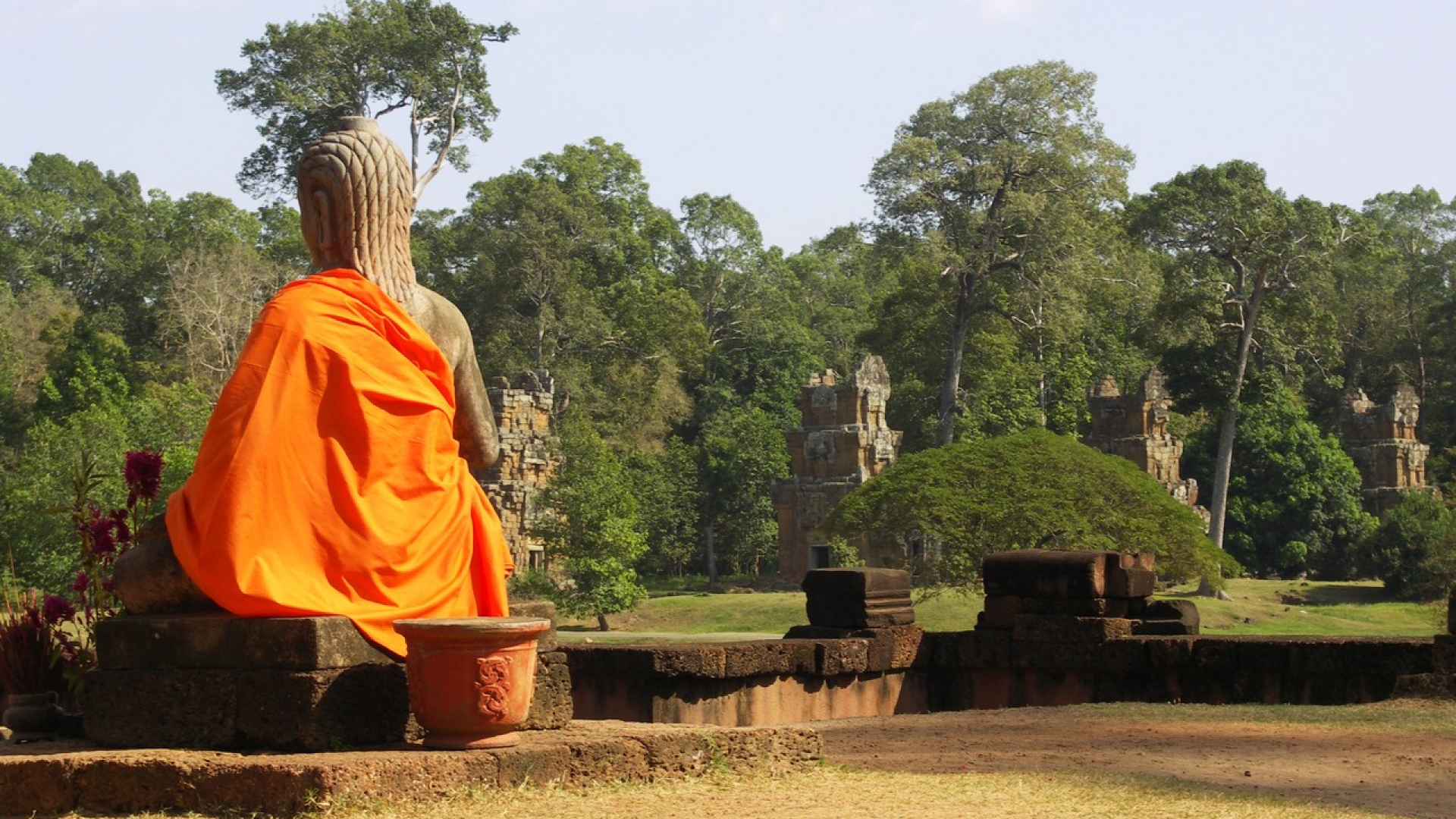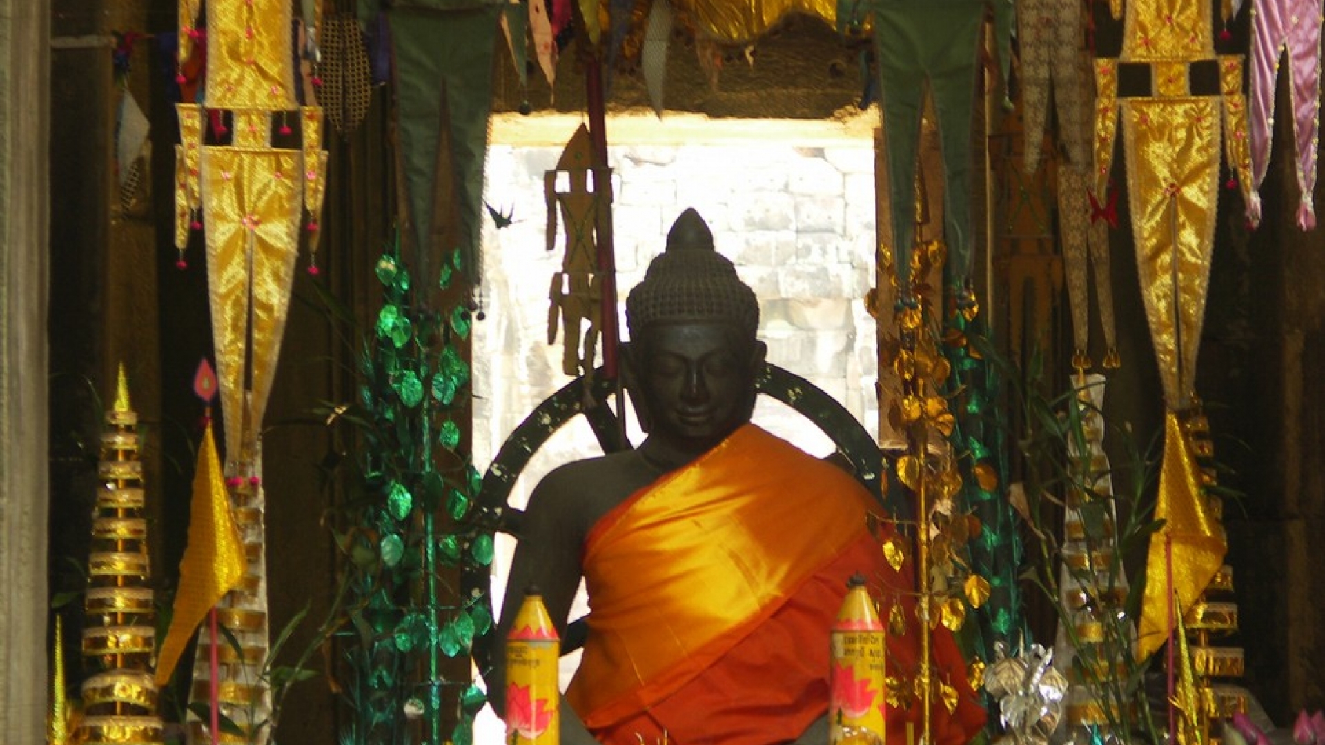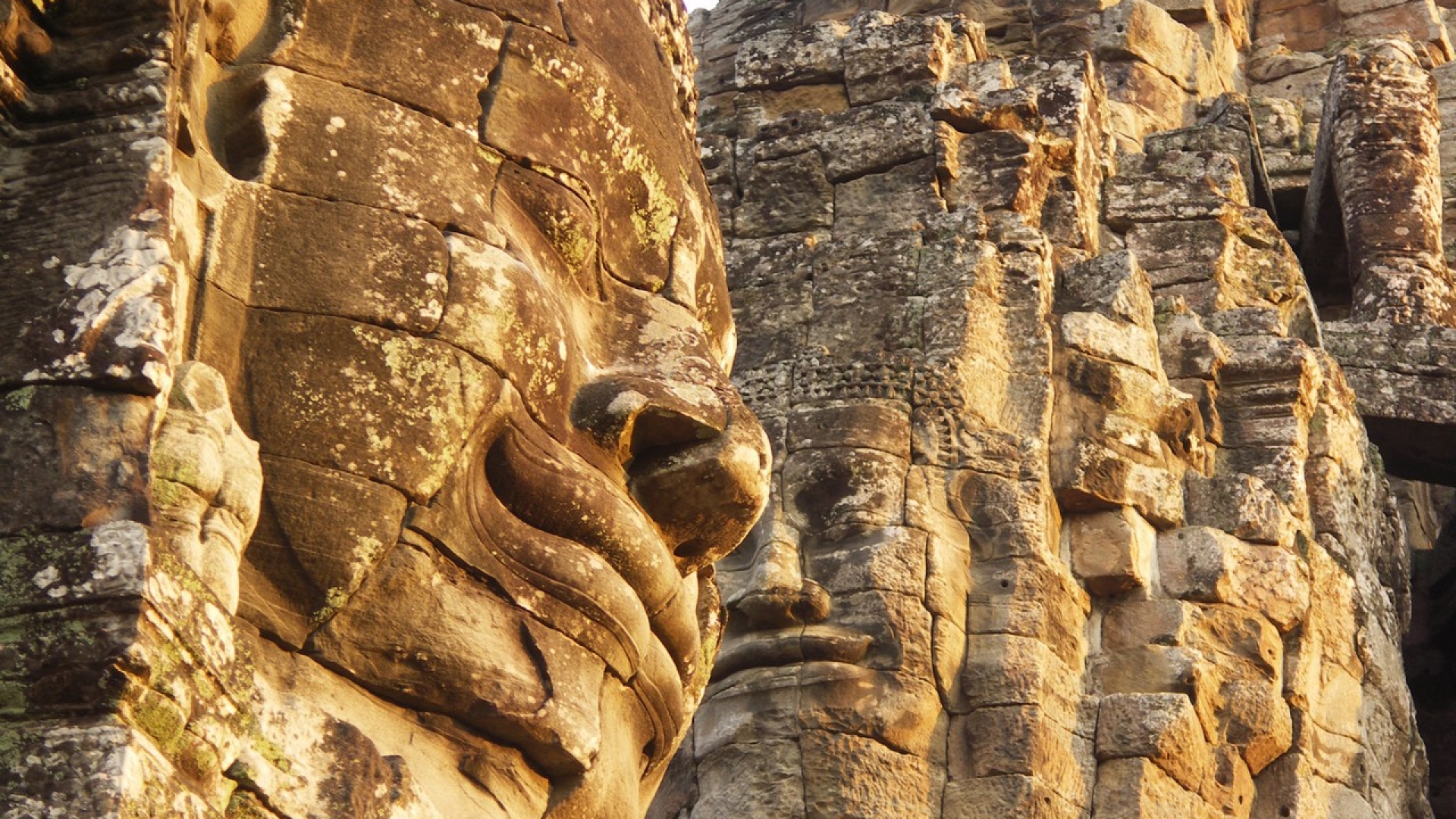 Die Gesichter der Tempeltürme des Bayon stellen den letzten großen Khmerherrscher Yararvarman VII dar. Er konvertierte vom Hinduismus zum Buddhismus, änderte das Grundprinzip der Errichtung des Zentralheiligtums von rechteckig auf rund und stellte sich selbst als Bodhisatva auf den 75 Türmen des Tempels in den vier Kardinalsrichtungen dar.