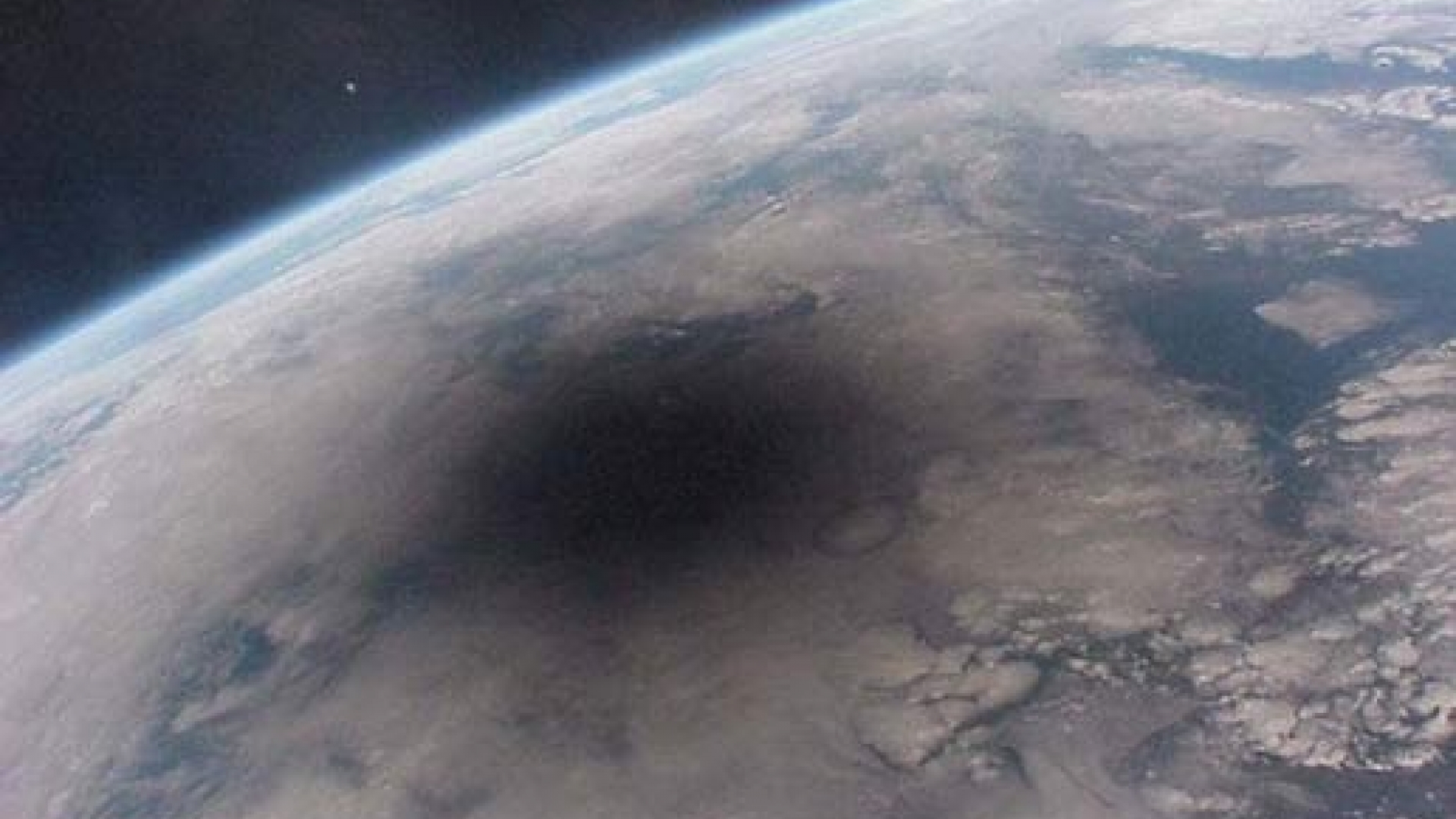 Dann bietet sich dieser beeindruckende Anblick - vorausgesetzt, der Beobachter befindet sich im Weltraum. Aus dieser Perspektive hat die Nasa diese Fotografie während einer Sonnenfinsternis aufgenommen. Sie dokumentiert den Schattenfall, den der Mond beim Durchkreuzen der Linie zwischen Sonne und Erde auf unseren Planeten wirft. Angesichts des Schattenflecks lässt sich gut nachvollziehen, weshalb die Gegend, von der aus eine Totale Sonnenfinsternis auf Erden zu beobachten ist, nur gut 100 Kilometer groß ist. Eine Partielle Sonnenfinsternis hingegen lässt sich von einem mehrere hundert Kilometer großen Gebiet aus verfolgen.