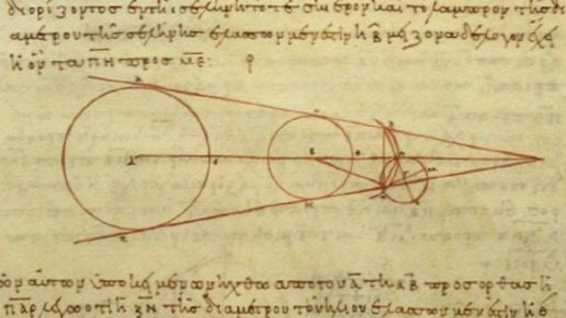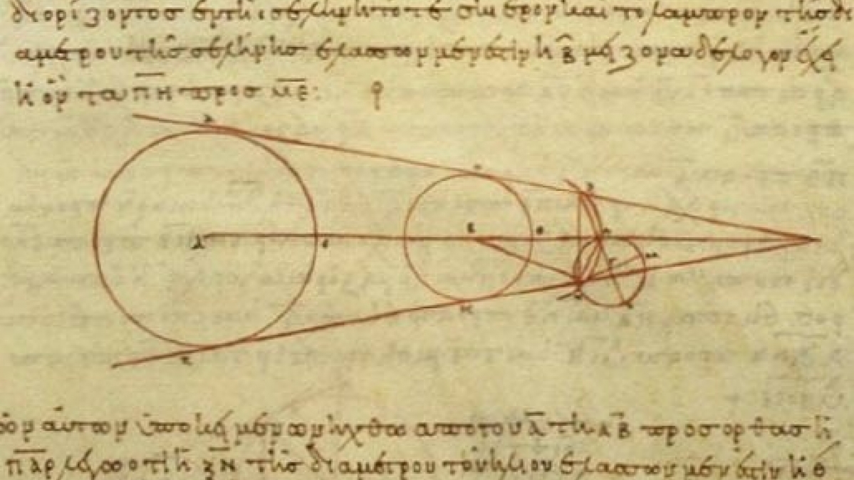 Aristarchos von Samos (310 bis 230 vor Christus) zählt zu den ersten griechischen Astronomen. Von ihm stammt das beeindruckende Werk "Über die Größen und Abstände von Sonne und Mond", in dem der Naturwissenschaftler noch das geozentrische Weltbild vertrat. Später sollte Aristarchos zum Anhänger des heliozentrischen Weltbildes werden, womit er allerdings einem Irrtum aufsaß. Auf dem Bild zu sehen ist eine aus dem 10. Jahrhundert stammende Kopie seiner Berechnungen.