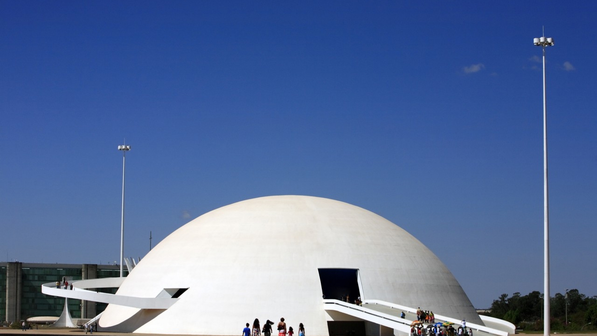 1957 wurde der brasilisanische Architekt Oscar Niemeyer Mitglied der Gründungsorganisation für Brasília; er entwarf den Palácio da Alvorada (Sitz des Präsidenten, 1957–59), den Obersten Gerichtshof (1958–60), die Kathedrale (1960 und 1969) sowie den Platz der drei Gewalten mit Regierungs- (1958–60), Kongress- (1958–70) und Justizgebäude (1966–72).Aufgrund der Machtübernahme der Militärs in Brasilien 1964 war er als Kommunist politischen Repressalien ausgesetzt, erhielt Berufsverbot und wurde mehrmals verhaftet, so dass er für einige Zeit ins Exil gehen musste. In Europa und Algerien bekam er neue Aufträge (u. a. Universität in Constantine, 1972 eröffnet; Kulturzentrum in Le Havre, 1981 eingeweiht). Niemeyer, der als "Legende der Moderne" bezeichnet wird, hat auch im Alter seine Schaffenskraft bewahrt. 2002 eröffnete das von ihm entworfene NovoMuseu in Curitiba, 2004 wurde die Konzerthalle in São Paulo fertiggestellt, 2010 das Auditorium in Ravello (Italien). 1988 wurde er mit dem Pritzker-Preis und 2004 mit dem Kunstpreis Praemium Imperiale ausgezeichnet.