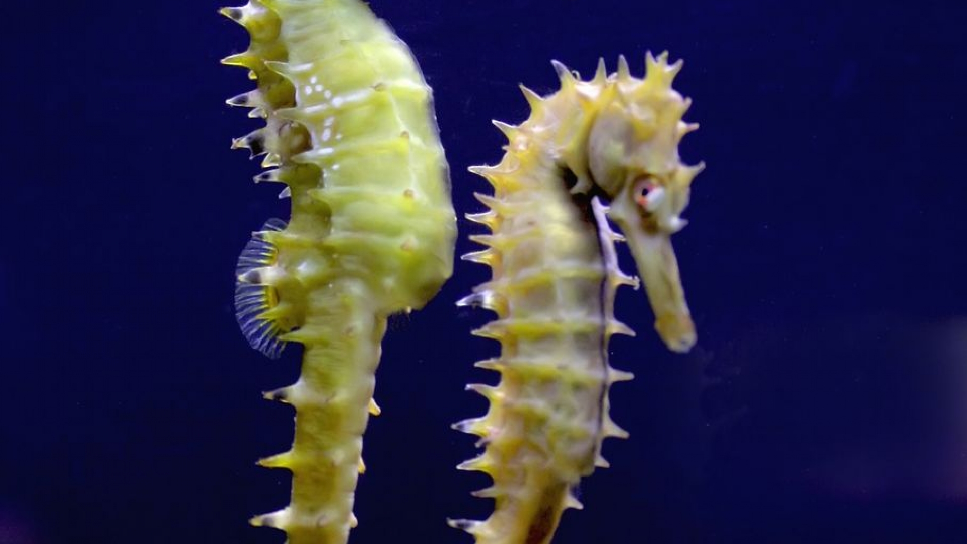 Seepferdchen sind wirbellose Tiere, die mit dem Schwanz greifen. Seepferdchen mit langer Schnauze sind eher in Mittelmeer und Atlantik zu finden, die mit kurzer Schnauze auch im Mittelmeer.