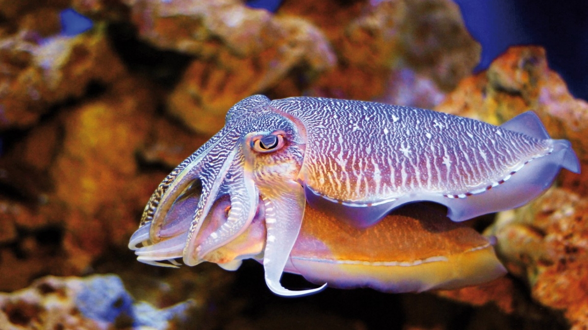Eigentlich ist Tintenfisch ein umgangssprachlicher Name für Kopffüßer. Das sind hochentwickelte Weichtiere. Dieser Tintenfisch ist im Golf von Thailand zu Hause.