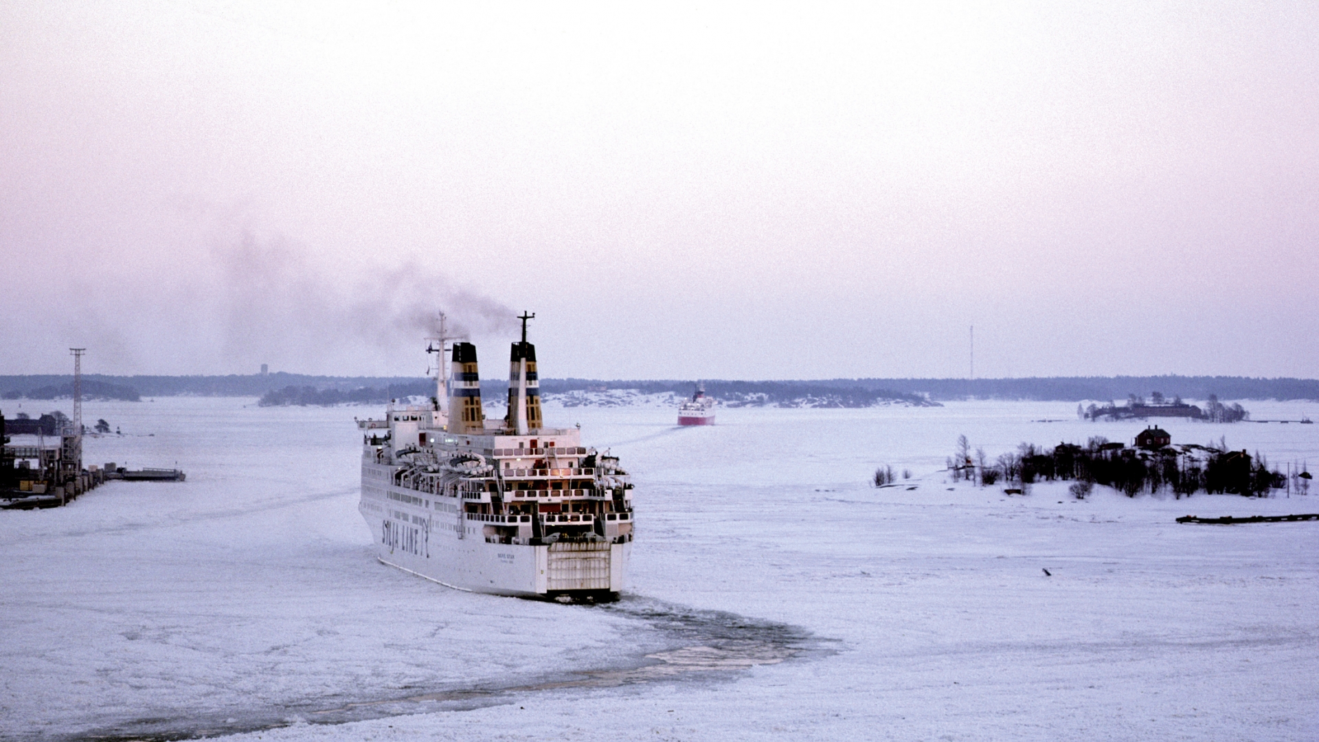 Immer wieder müssen Eisbrecher Fähren aus dem Eis befreien, zum Beispiel auf der Ostsee bei Packeis vor Schweden. Es gibt aber auch Fähren, die selbst als Eisbrecher konstruiert sind und jeden Winter ihren Dienst verrichten.