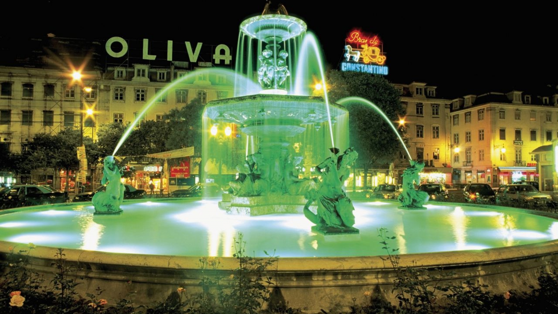 Das Wasser schießt zischend,weißschäumend und gischend,schneekühl und erfrischend,als Strähne empor;aus eisweißer Mähneperlt Träne auf Träne,doch speit die Fontänestets neue hervor.Von Eduard StuckenRossio Platz in Lissabon