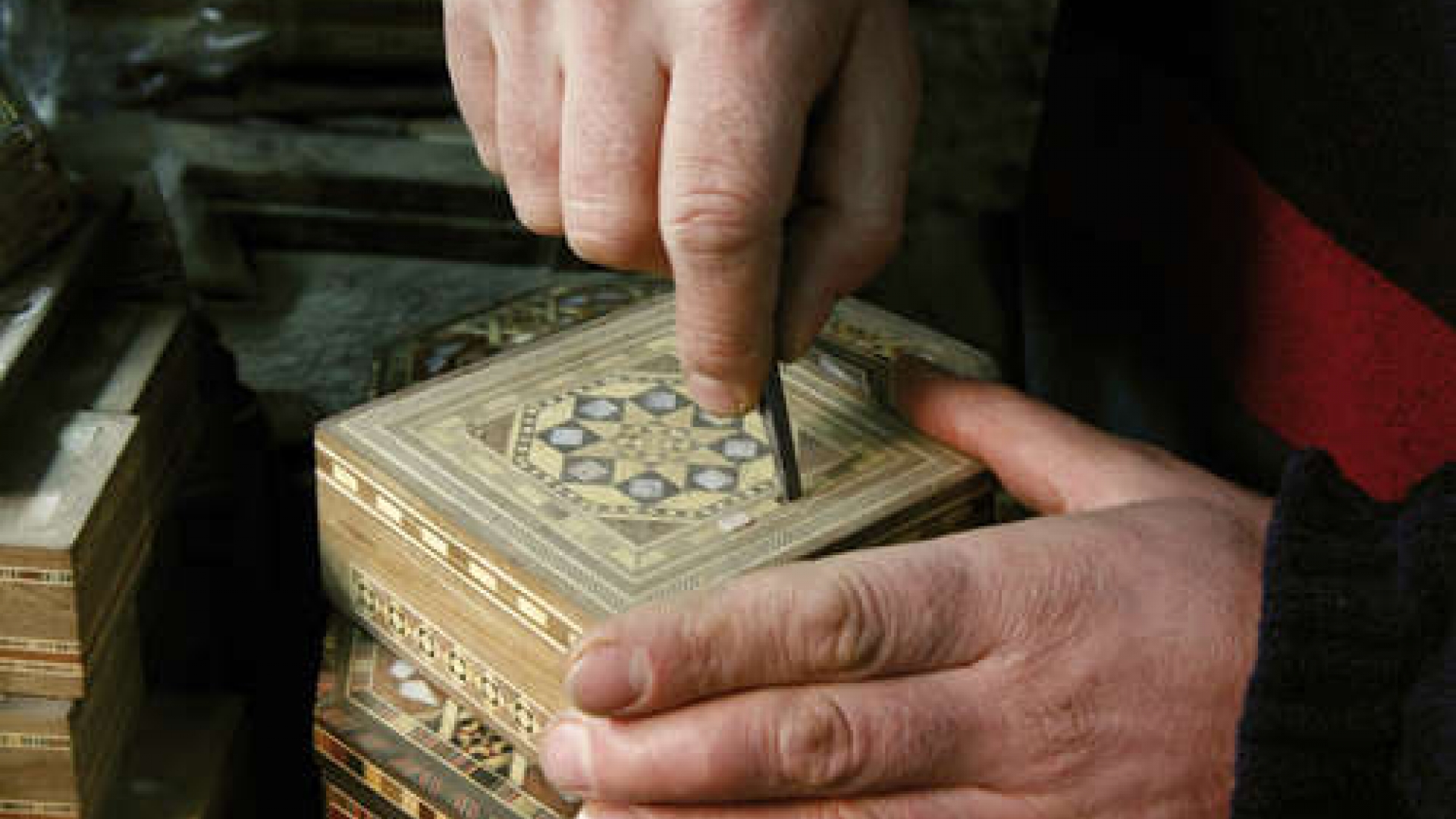 Ein Handwerker in Damaskus gibt dem Schmuckkästchen den letzten Schliff. Außen soll es genauso schön sein wie innen: kunstvoll filigran.