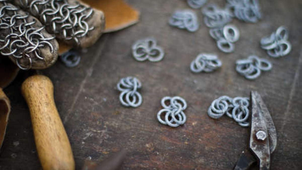 Das sieht doch ganz nach einem werdenden Kettenhemd aus! Seine Blüte hatte die Kunst, Kettenhemden zu fertigen, im 11. bis 13. Jahrhundert als der Verschleiß an ritterlicher Schutzbekleidung aus zusammengenieteten Ringen oder geflochtenem Eisendraht groß war.