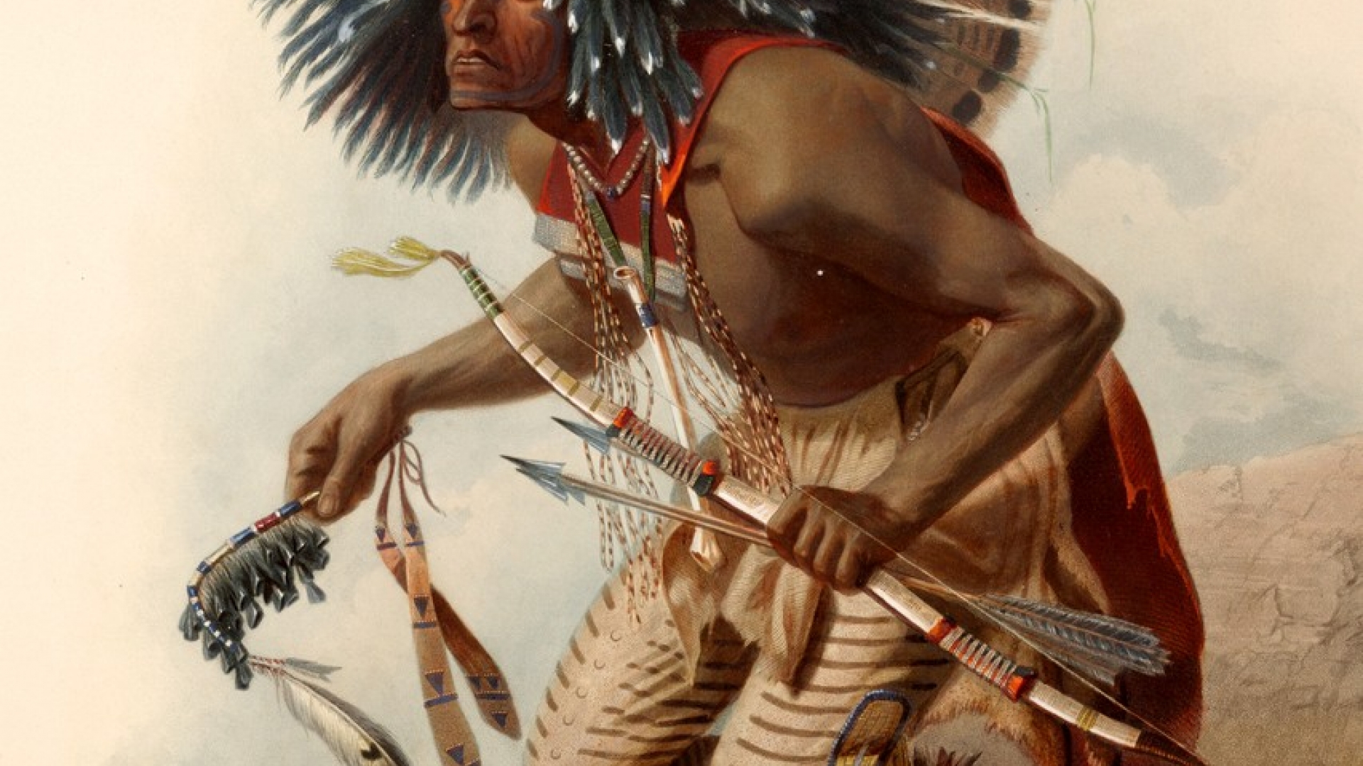 "Mönnitarri-Krieger im Anzuge des Hundetanzes": so untertitelte Karl Bodmer sein geheimnisvolles Kunstwerk.