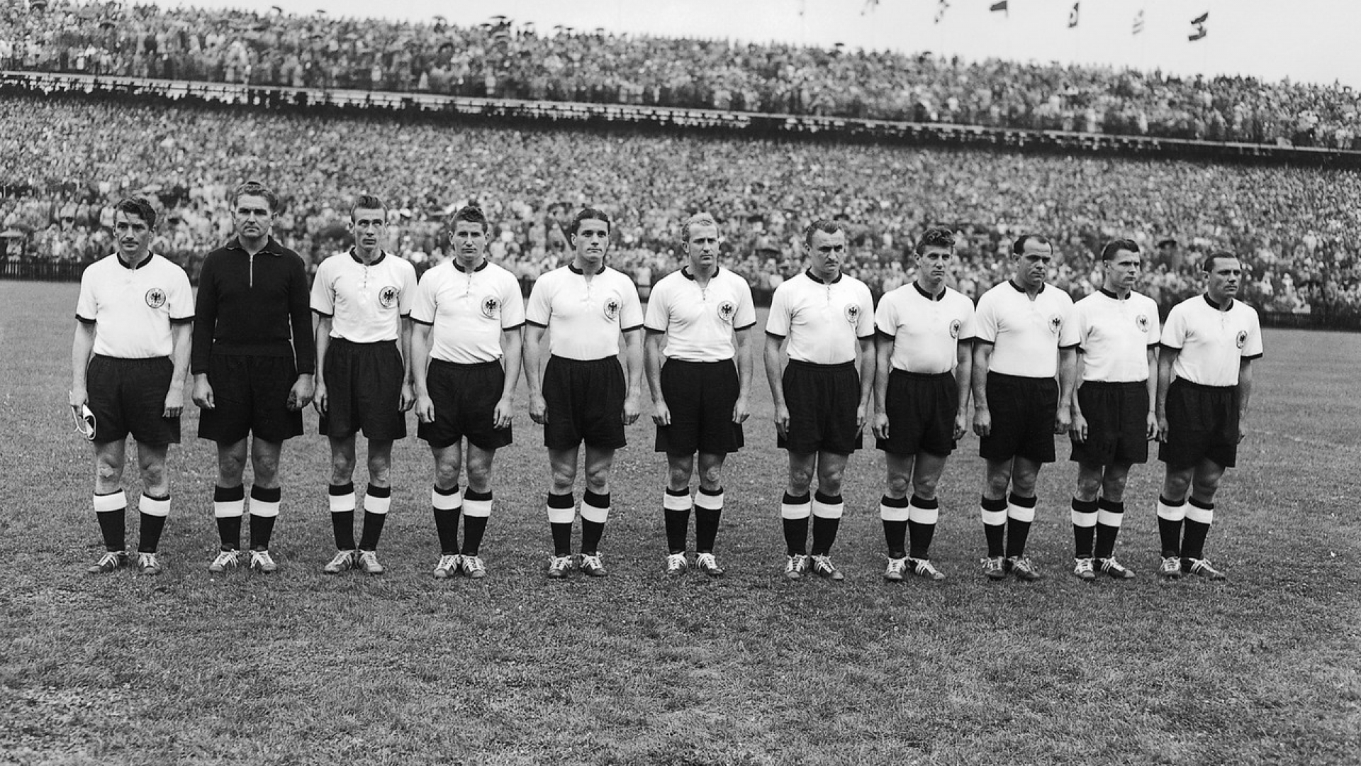 Im mit 70 000 Zuschauern ausverkauften Berner Wankdorfstadion gewinnt die deutsche Nationalmannchaft sensationell mit 3:2 gegen den hohen Favoriten Ungarn - und wird Fußballweltmeister. Held des Tages ist der zweifache Torschütze Helmut Rahn.Deutschland gewinnt den Titel gegen eine Mannschaft, die seit 1950 für unschlagbar gehalten wurde. Während in der Bundesrepublik der Sieg enthusiastisch gefeiert wird, mischen sich in die ausländischen Pressereaktionen neben Anerkennung für die Leistung auch kritische Stimmen. Mitverantwortlich für diese Missstimmung ist eine vom Rundfunk übertragene Laudatio, die der Präsident des Deutschen Fußballbundes, Peco Bauwens, auf die Mannschaft hält. Als Bauwens den Erfolg erklärt und dabei aus dem nationalsozialistischen Sprachgebrauch bekannte Phrasen von der "Fahne des Herzens" und vom "Führerprinzip" bemüht, scheinen sich Befürchtungen von Kritikern zu bestätigen, dass mancher Deutsche den sportlichen Erfolg in den Dienst eines neuen Nationalismus stellen könnte.