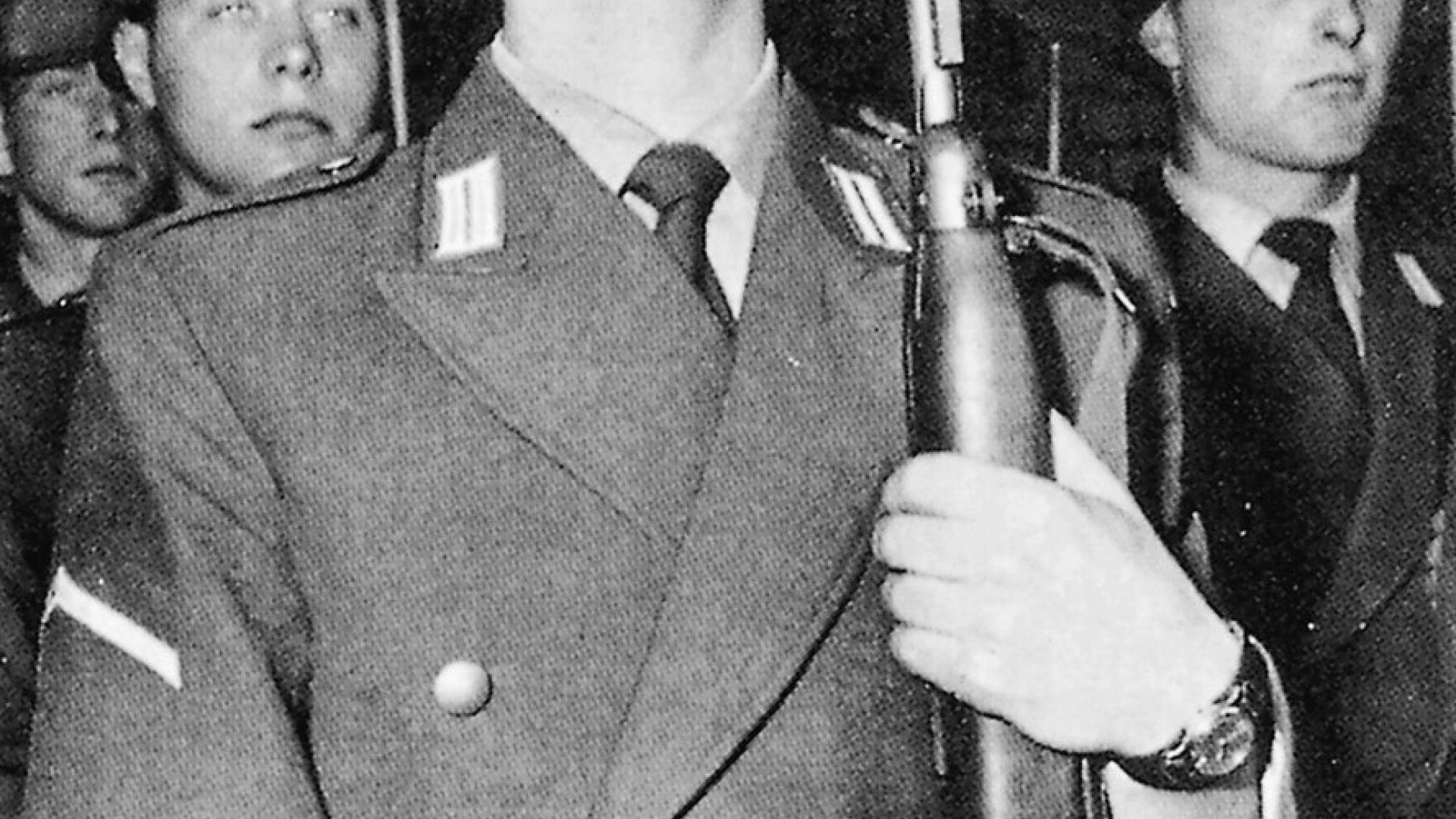 Über 1000 Jugendliche bereiten dem US-amerikanischen Rock-'n'-Roll-Star Elvis Presley bei seiner Ankunft in Bremerhaven einen stürmischen Empfang. Presley leistet seinen Wehrdienst als Gefreiter der US-Truppen in der Bundesrepublik ab.Presley, der am 24. März in die Armee eintrat, soll nach den Worten seiner Vorgesetzten als ganz normaler Soldat behandelt werden; er wird bei den US-amerikanischen Streitkräften im hessischen Friedberg stationiert. In Bremerhaven verlässt der Sänger zwar wie jeder andere Soldat mit geschultertem Seesack das Schiff, um in den Transportzug zu steigen, verteilt dann aber Kusshände sowie rote und weiße Nelken an seine Fans. Diese fordern hinter einer doppelten Polizeiabsperrung: "Wir wollen Elvis sehen!"Zwar ist der Rock 'n' Roll ebenso wie Presleys Hits in der Bundesrepublik noch wenig verbreitet, die kleine Fangemeinde begeistert sich aber umso mehr für den Sänger mit dem erregenden Hüftschwung, der 1956 mit "Heartbreak Hotel" seinen ersten Hit landete.Elvis Presley (im Bild rechts) bei Antritt seines Wehrdienstes.