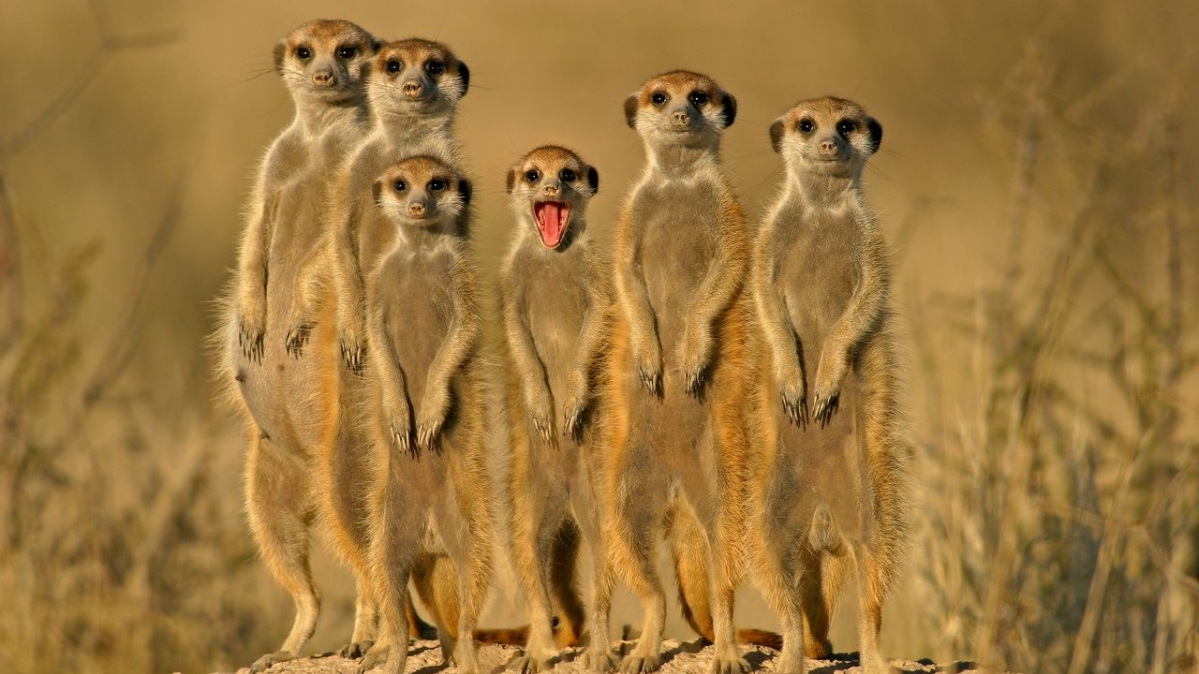 Für das Foto aufgestellt: Erdmännchen in Südafrika
