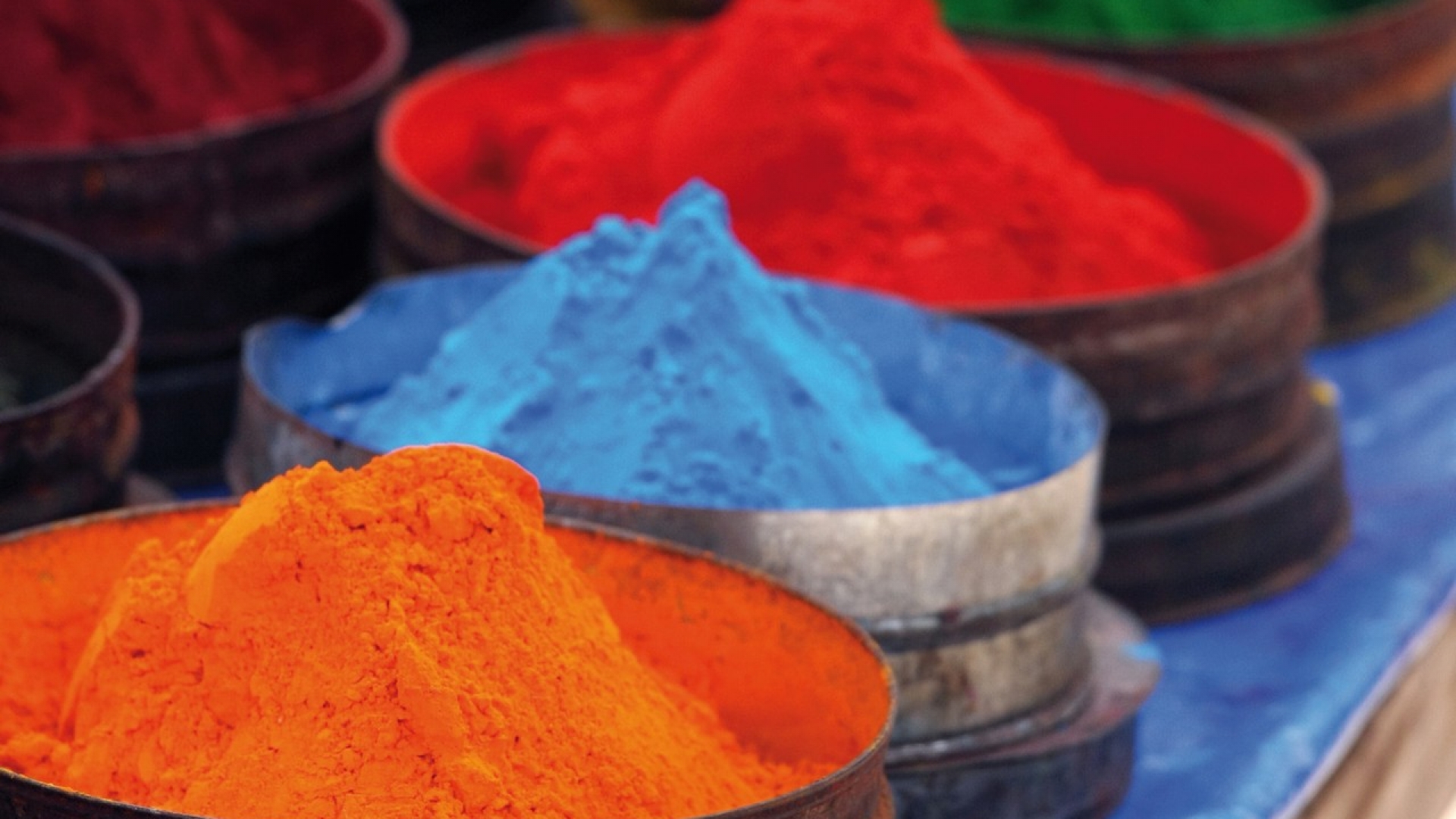 Auf dem Markt in Pisac in Peru werden Farbstoffe feilgeboten.