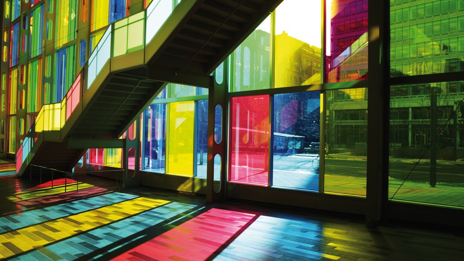 Gebäude mit bunten Glasfenstern in Montreal in Kanada.