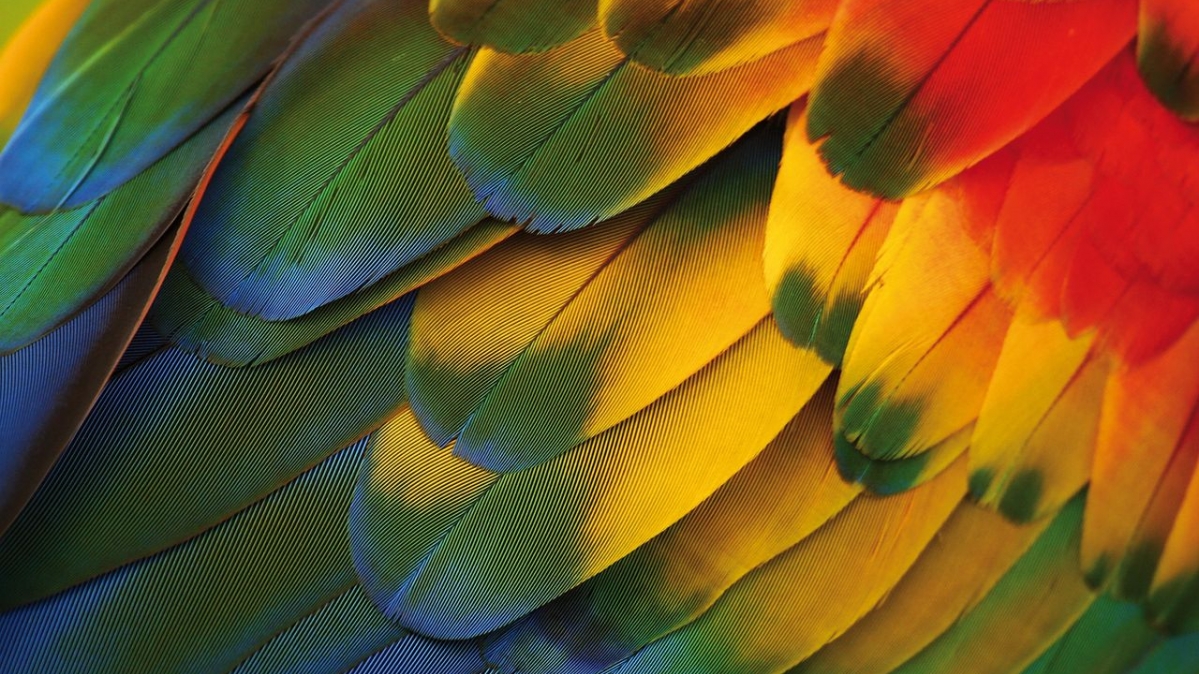 Hinter diesen Federn steckt ein Plappermaul. Das Gefieder geört zu einem Ara-Papagei aus dem Regenwald.