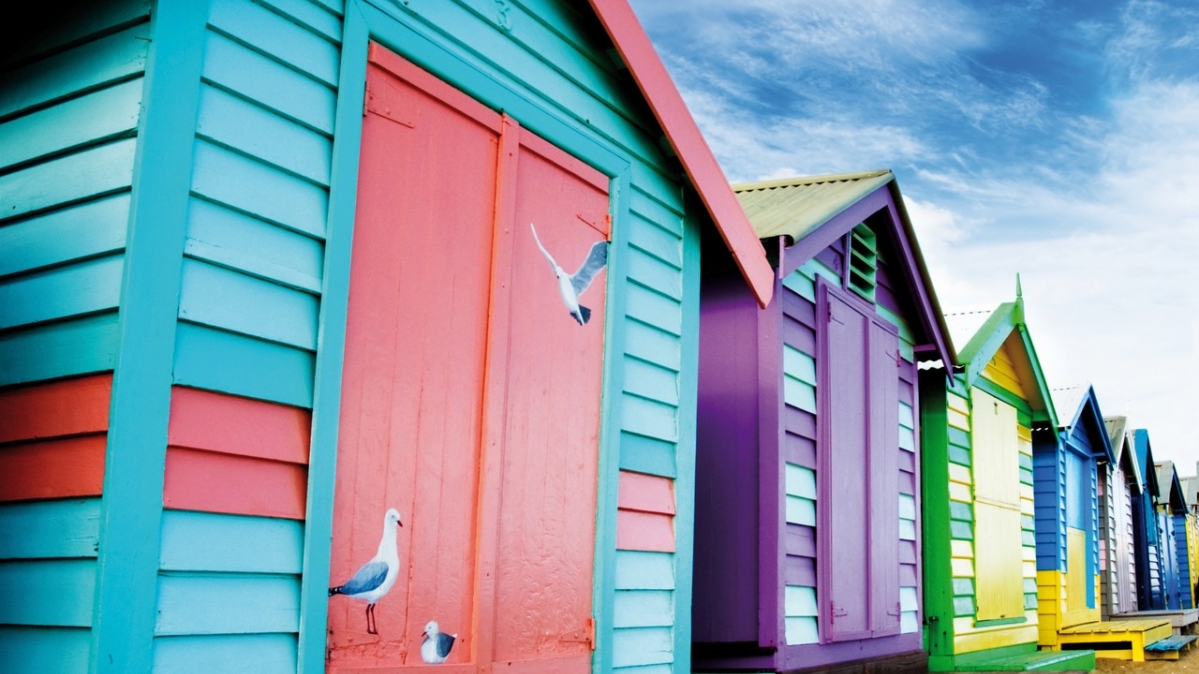 Urlaub in farbigen Hütten an der Küste Australiens.