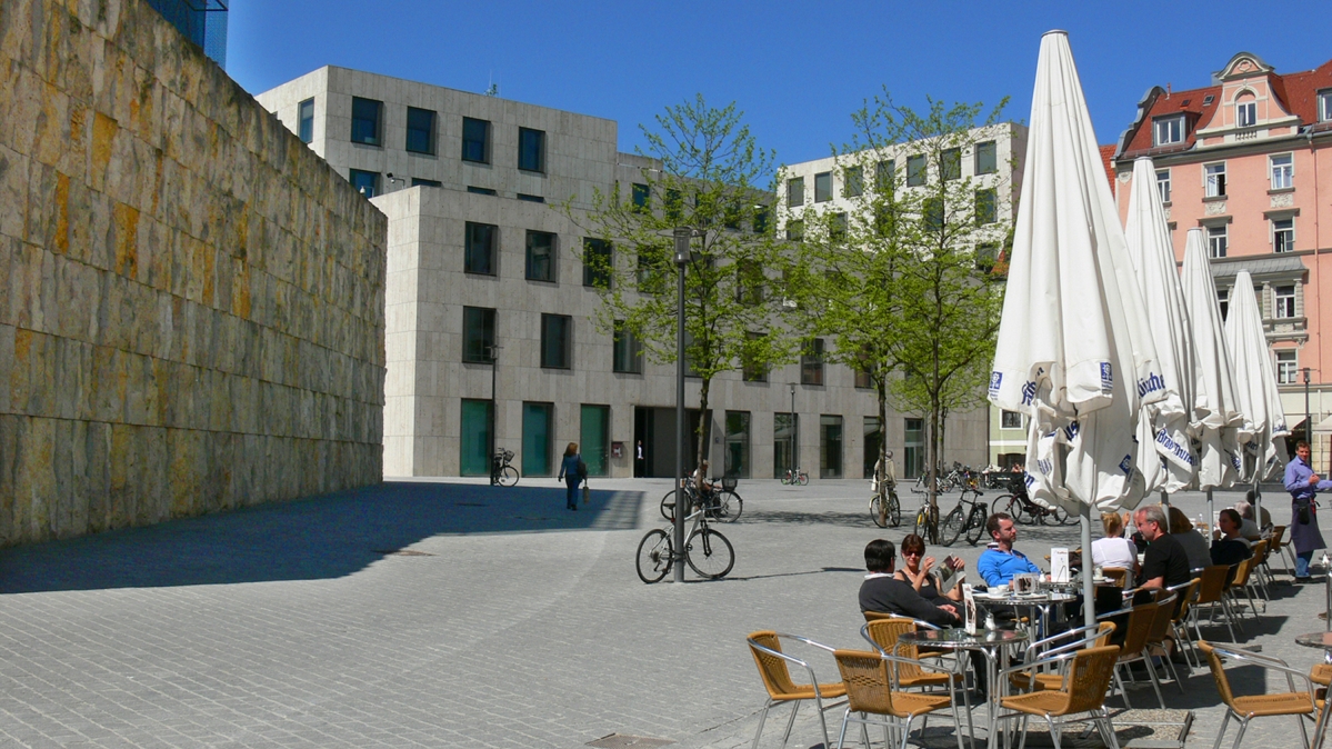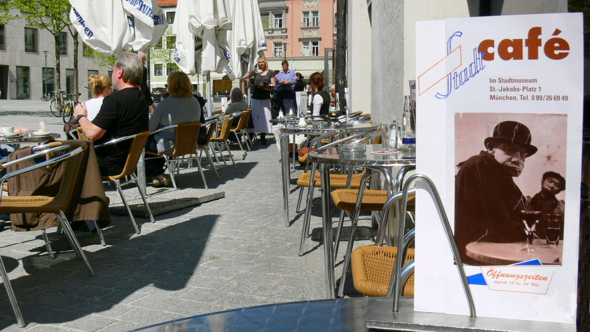 ... hat man das immer sehenswerte Stadtmuseum im Hintergrund, den für Autos gesperrten und für das München Zentrum ruhigen St.-Jakobs-Platz zu Füßen und das Jüdische Museum und Gemeindezentrum sowie die Synagoge und das Angerkloster vor sich. Aber nicht vergessen: Der Hinterhof des Stadtcafés ist mindestens genauso schön!